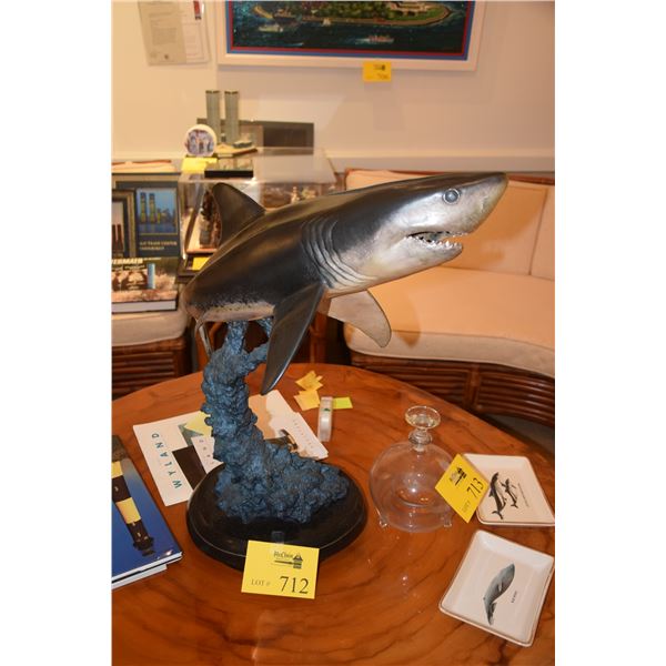 BRONZE SHARK SCULPTURE ON MARBLE BASE; SIGNED WYLAND (26" L X 24 1/2" H)