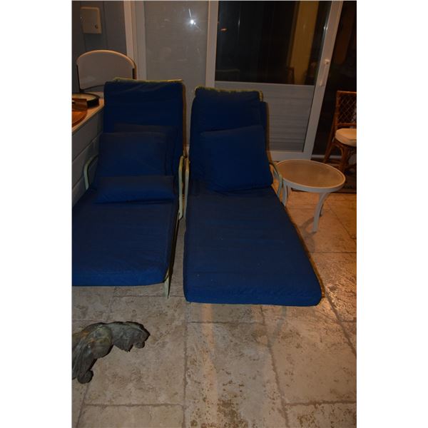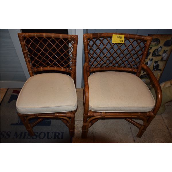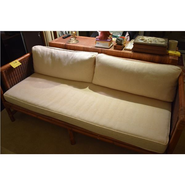 RATTAN QUARTER MOON COUCHES W/CUSHIONS (PAIR)