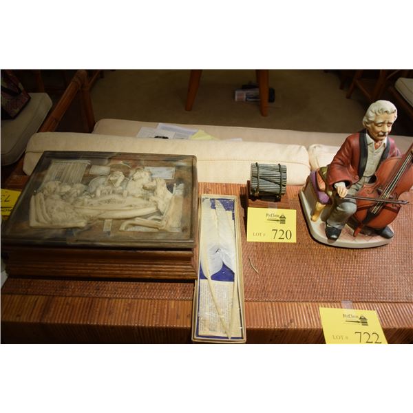 STATUARY, ALAMO COLLECTABLES, BOX , BOOKENDS, ETC. (14 PCS)