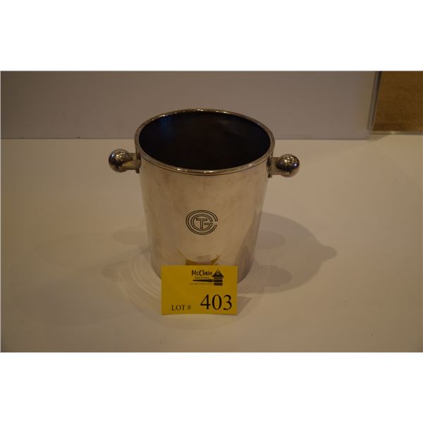 NORMANDIE: SILVERPLATED 1ST CLASS CHAMPAGNE COOLER BY CHRISTOFLE W/LARGE HOUSE LOGO ON THE SIDE & HE403 - NORMANDIE: SILVERPLATED 1ST CLASS CHAMPAGNE COOLER BY CHRISTOFLE W/LARGE HOUSE LOGO ON THE SIDE & HE