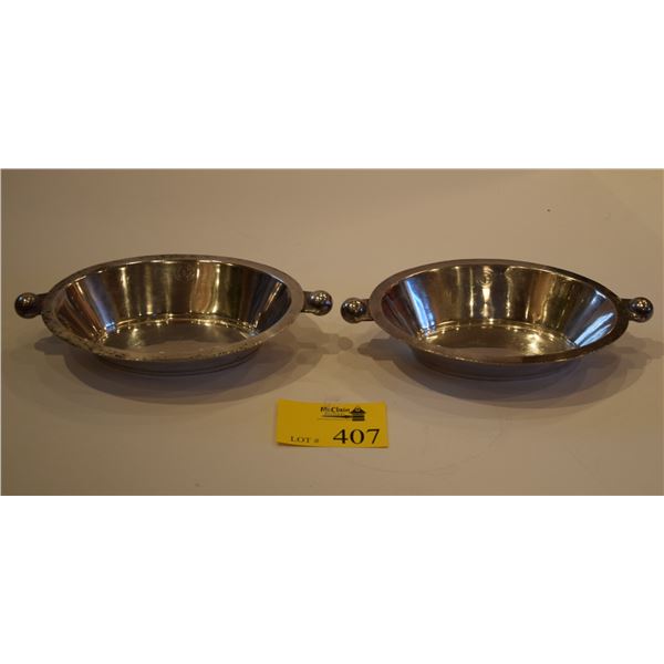FRENCH LINE-NORMANDIE: SILVER PLATED FRUIT BOWL/BREAD BASKET BY CHRISTOFLE W/THE HOUSE LOGO ON THE SIDE, HER FAMOUS BALL HANDLES AT EACH END (12&quo...