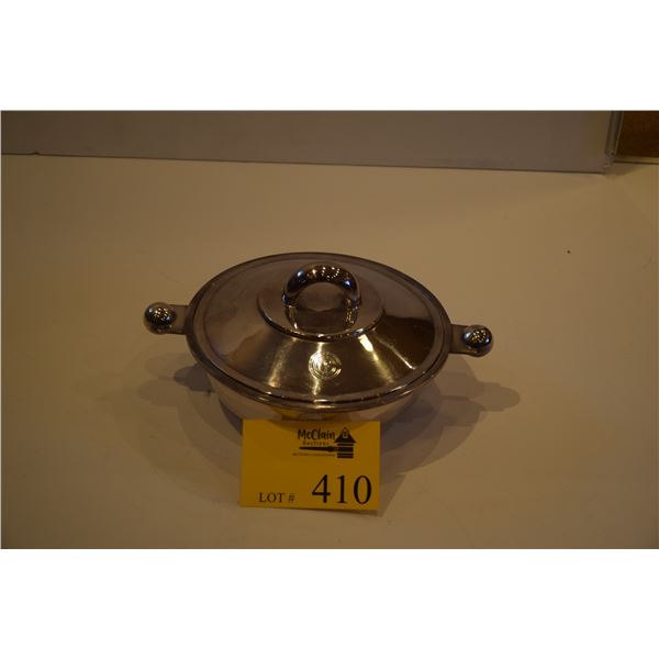 NORMANDIE: SILVER PLATED COVERED VEGETABLE DISH BY CHRISTOFLE W/HOUSE LOG ON THE FRONT (8 1/2" X 3 1/4 DEEP)