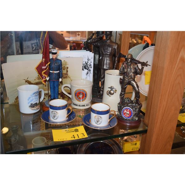 COLLECTION OF MARINE MEMORABILIA: STATUARY, MUGS, TEA CUPS & SAUCERS (7 PCS)413 - COLLECTION OF MARINE MEMORABILIA: STATUARY, MUGS, TEA CUPS & SAUCERS (7 PCS)