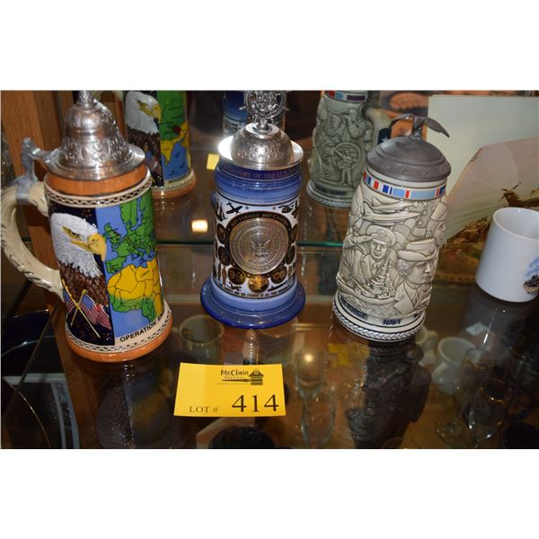 BEER STEINS: OPERATION ENDURING FREEDOM, HISTORY OF THE U.S. NAVY & TRIBUTE TO THE AMERICAN ARMED FORCES (3 PCS)