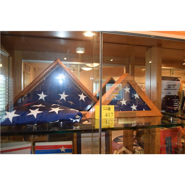 SHADOW BOX FRAMED FLAGS (1 FLEW OVER USS ARIZONA, USS BOWFIN & USS MISSOURI) & FOLDED FLAG (3 PCS)417 - SHADOW BOX FRAMED FLAGS (1 FLEW OVER USS ARIZONA, USS BOWFIN & USS MISSOURI) & FOLDED FLAG (3 PCS)