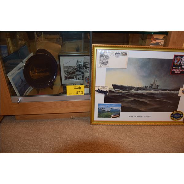 COLLECTION OF ITEMS FROM USS BOWFIN: FRAMED PRINTS, PLATES, MUG, MAGNETS & ACTUAL PIECES OF THE BOWF420 - COLLECTION OF ITEMS FROM USS BOWFIN: FRAMED PRINTS, PLATES, MUG, MAGNETS & ACTUAL PIECES OF THE BOWF