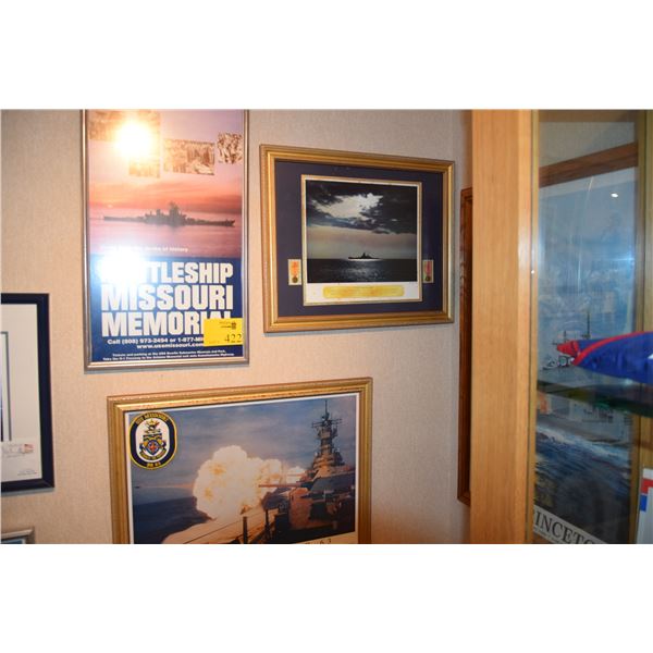 FRAMED PRINTS, USS MISSOURI BB-63 (3 PCS)422 - FRAMED PRINTS, USS MISSOURI BB-63 (3 PCS)