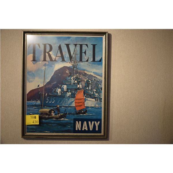 FRAMED NAVY TRAVEL POSTER (24" X 30")430 - FRAMED NAVY TRAVEL POSTER (24" X 30")