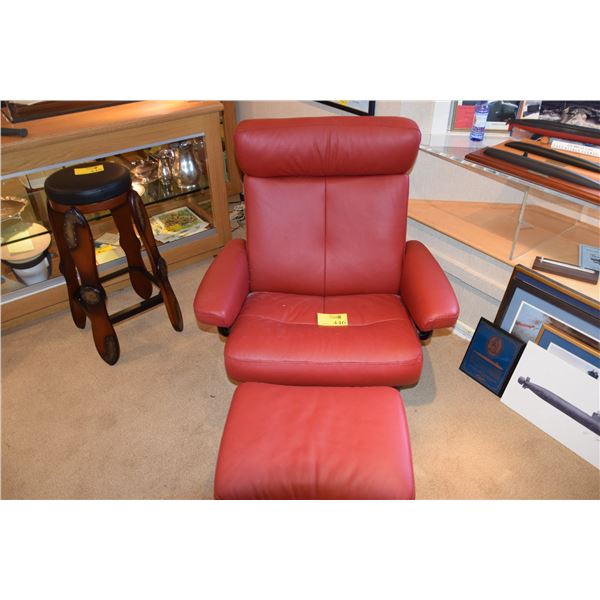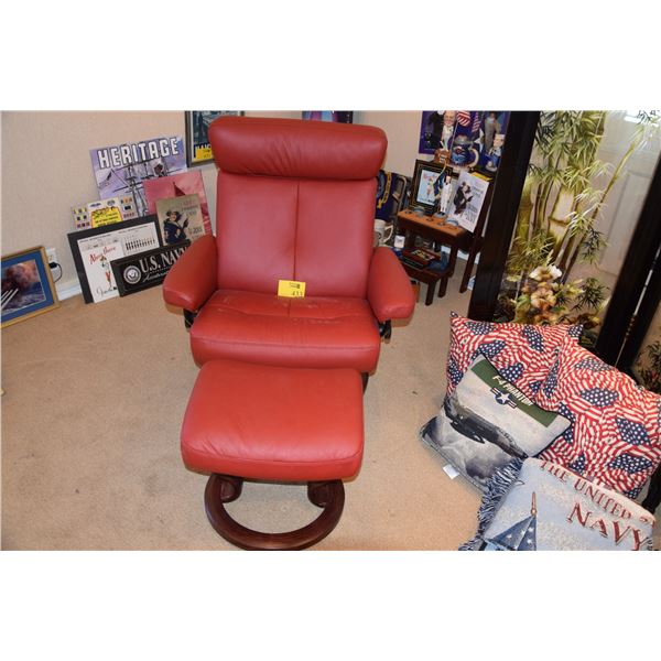RED LEATHER STRESSLESS CHAIR W/OTTOMAN BY EKORNES (2 PCS)