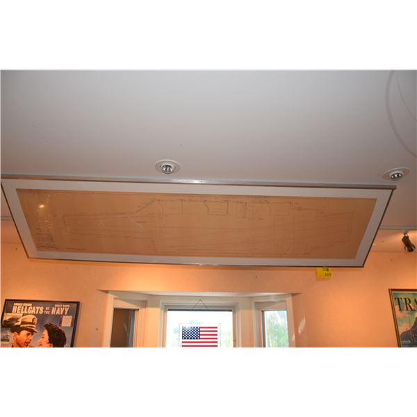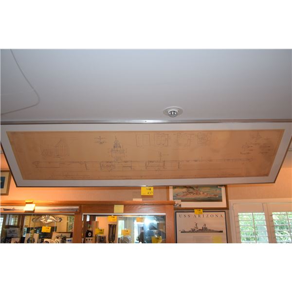 FRAMED WARSHIP DRAWINGS, USS ENTERPRISE (SVN-65) SHOWING SIDE VIEW OF SHIP (24 1/2" X 88")437 - FRAMED WARSHIP DRAWINGS, USS ENTERPRISE (SVN-65) SHOWING SIDE VIEW OF SHIP (24 1/2" X 88")