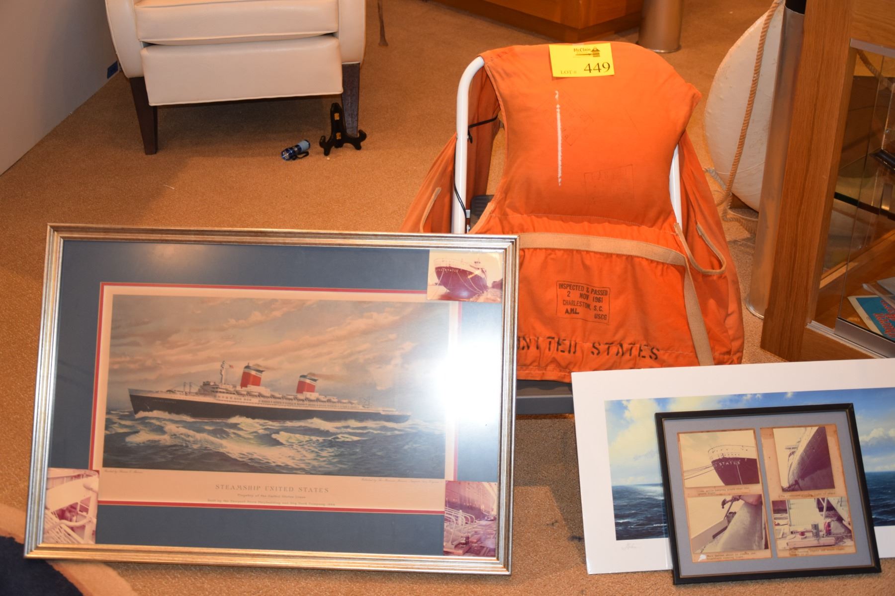 UNITED STATES: HER LIFE JACKET-STAMPED W/HER NAME & COMPLETE W/WHISTLE (ADULT SIZE), FRAMED PRINT, UNFRAMED PRINT & PHOTOS (4 PCS)