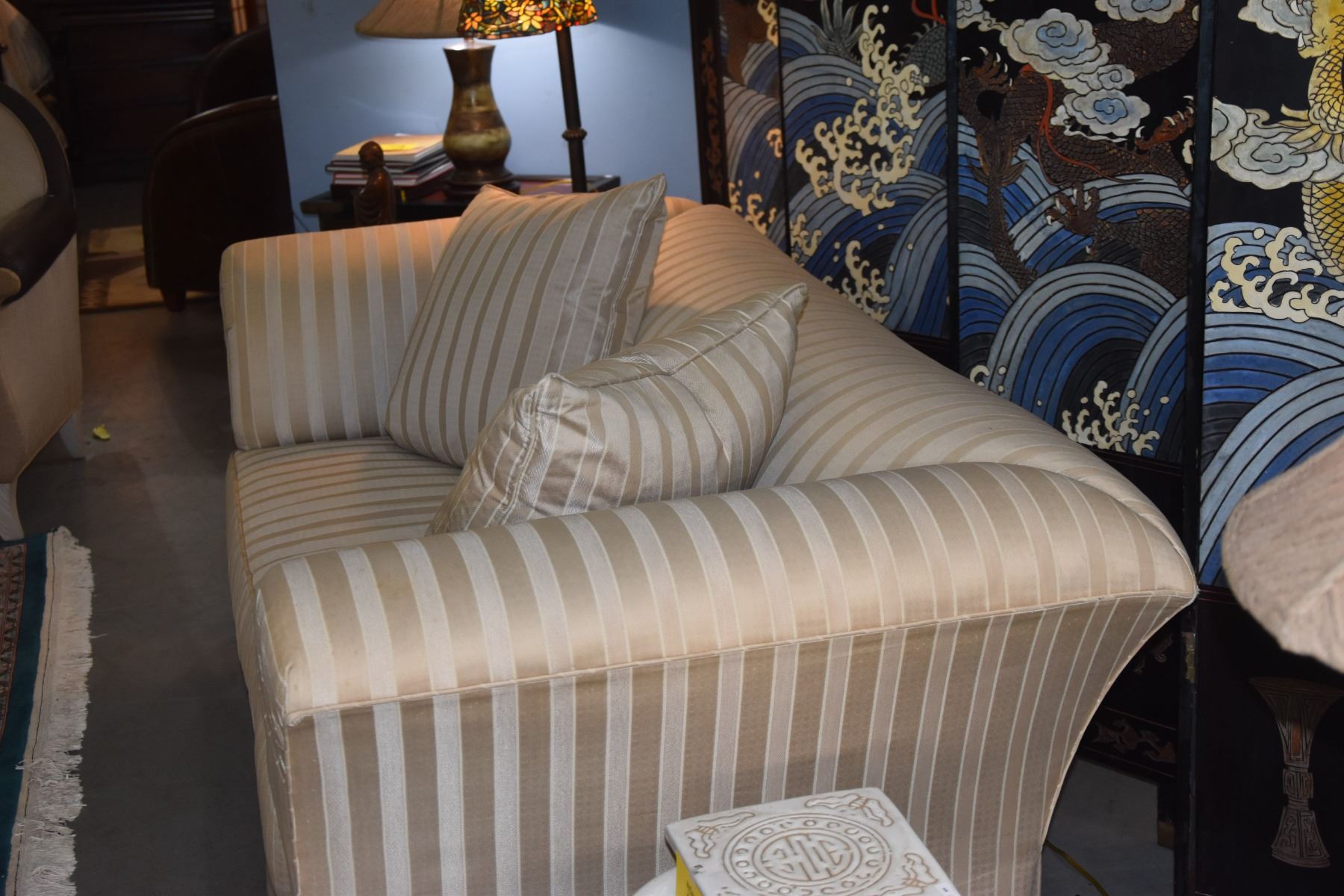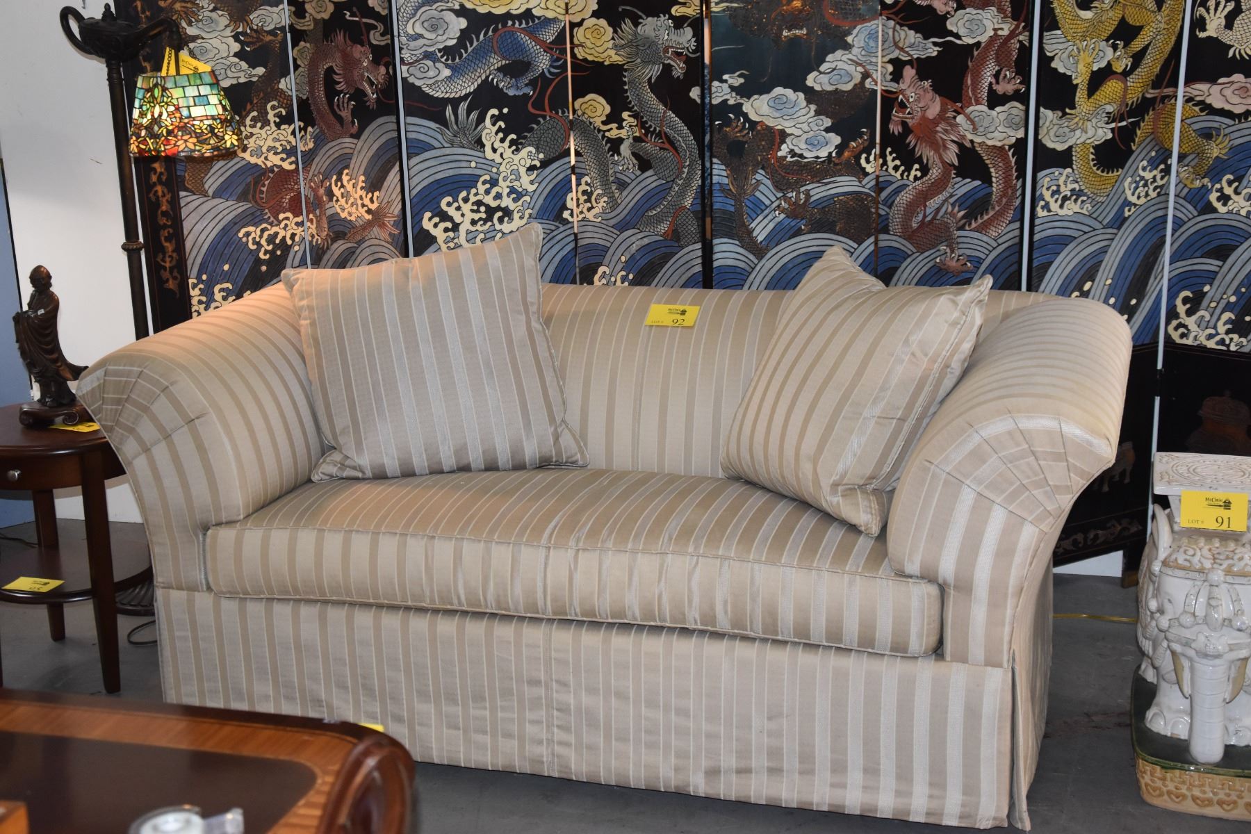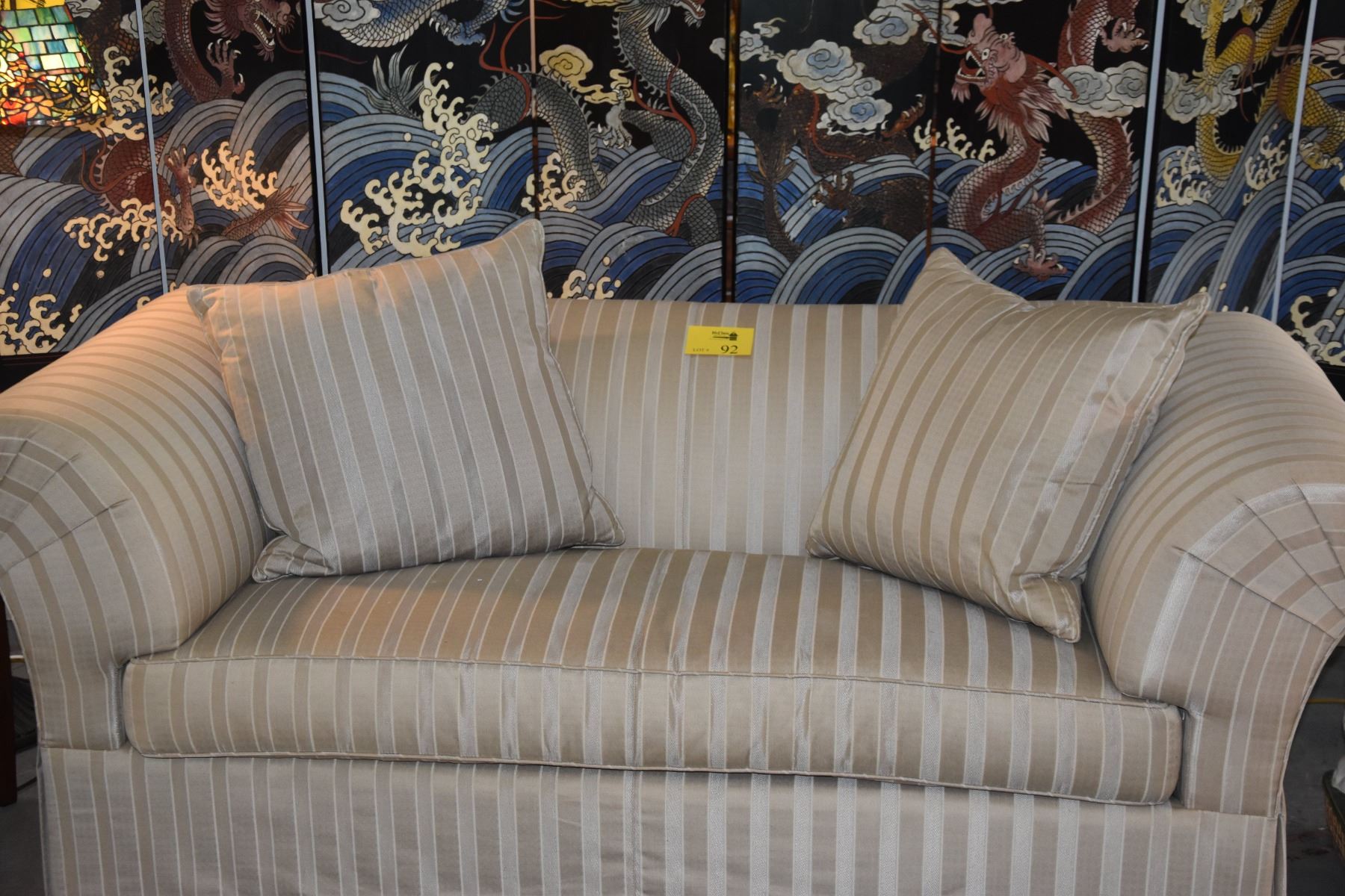 UPHOLSTERED LOVESEAT W/DOWN PILLOWS