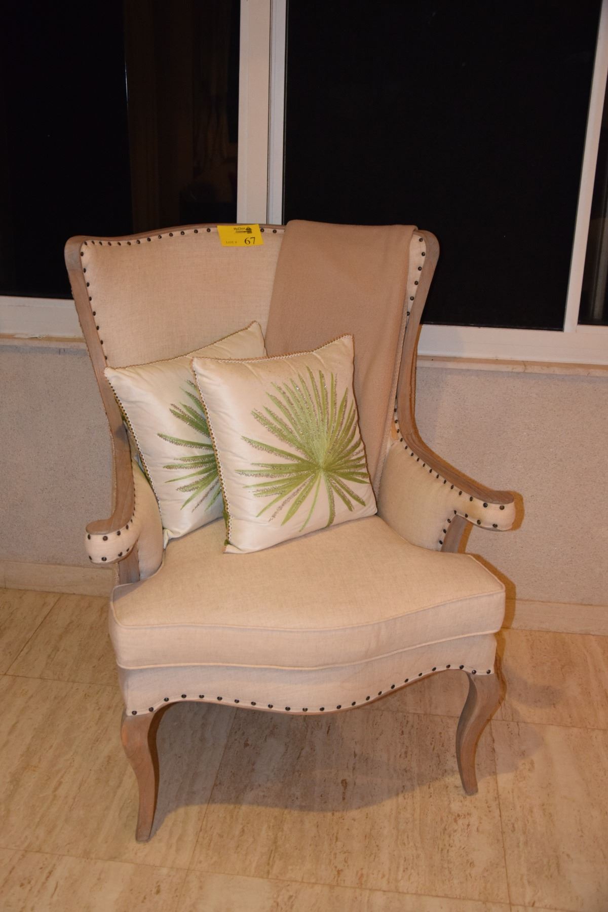 UPHOLSTERED WINGBACK ARM CHAIR (33" W X 43 1/2"H) (MATCHES LOT 175)
