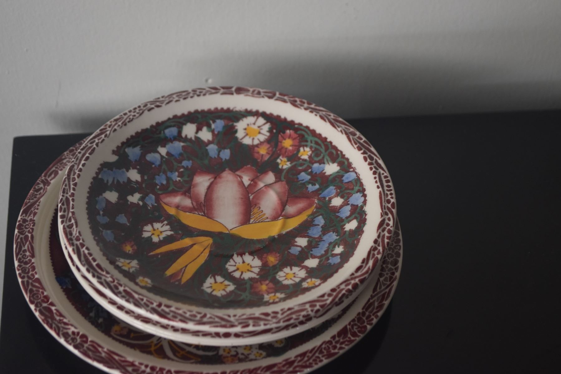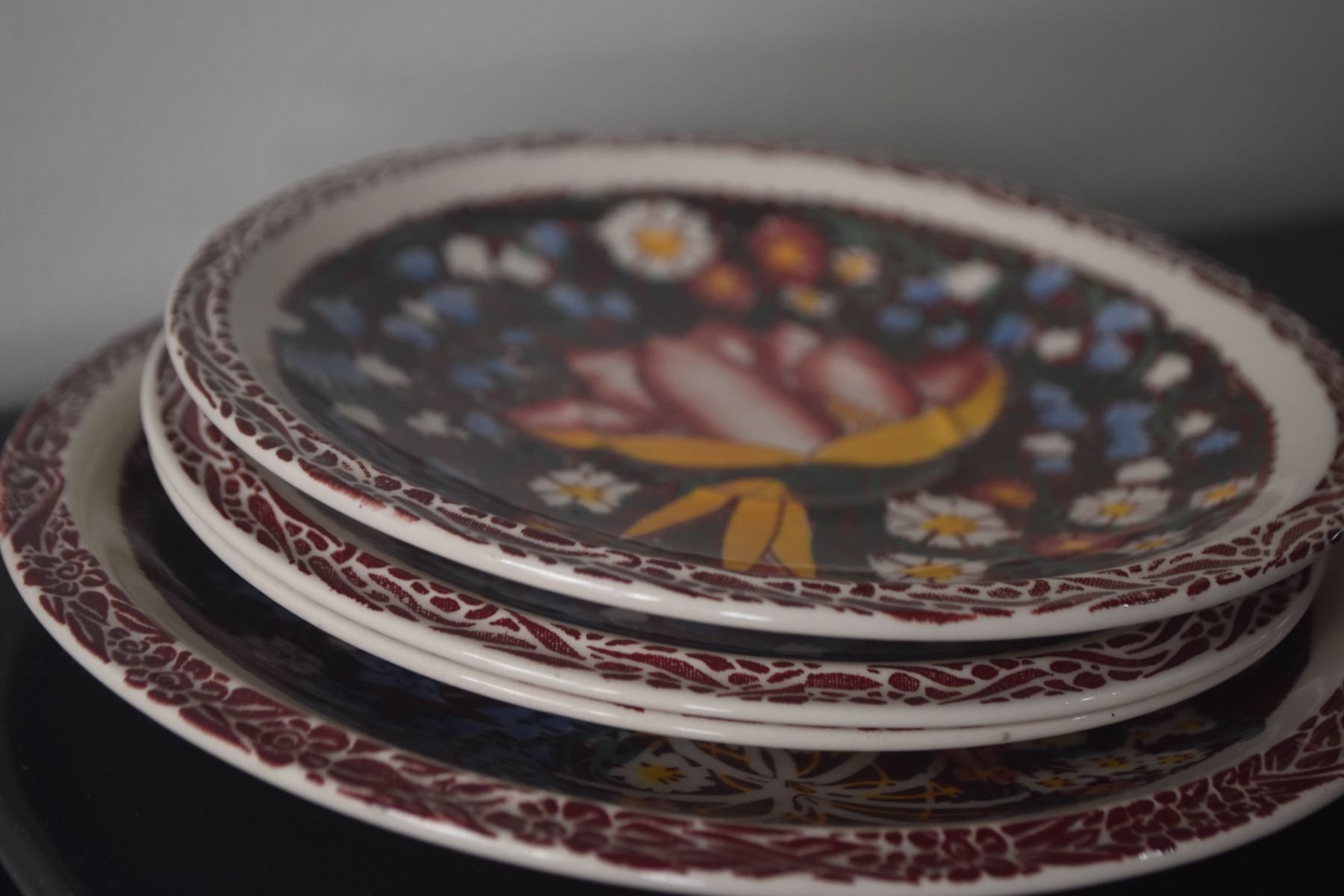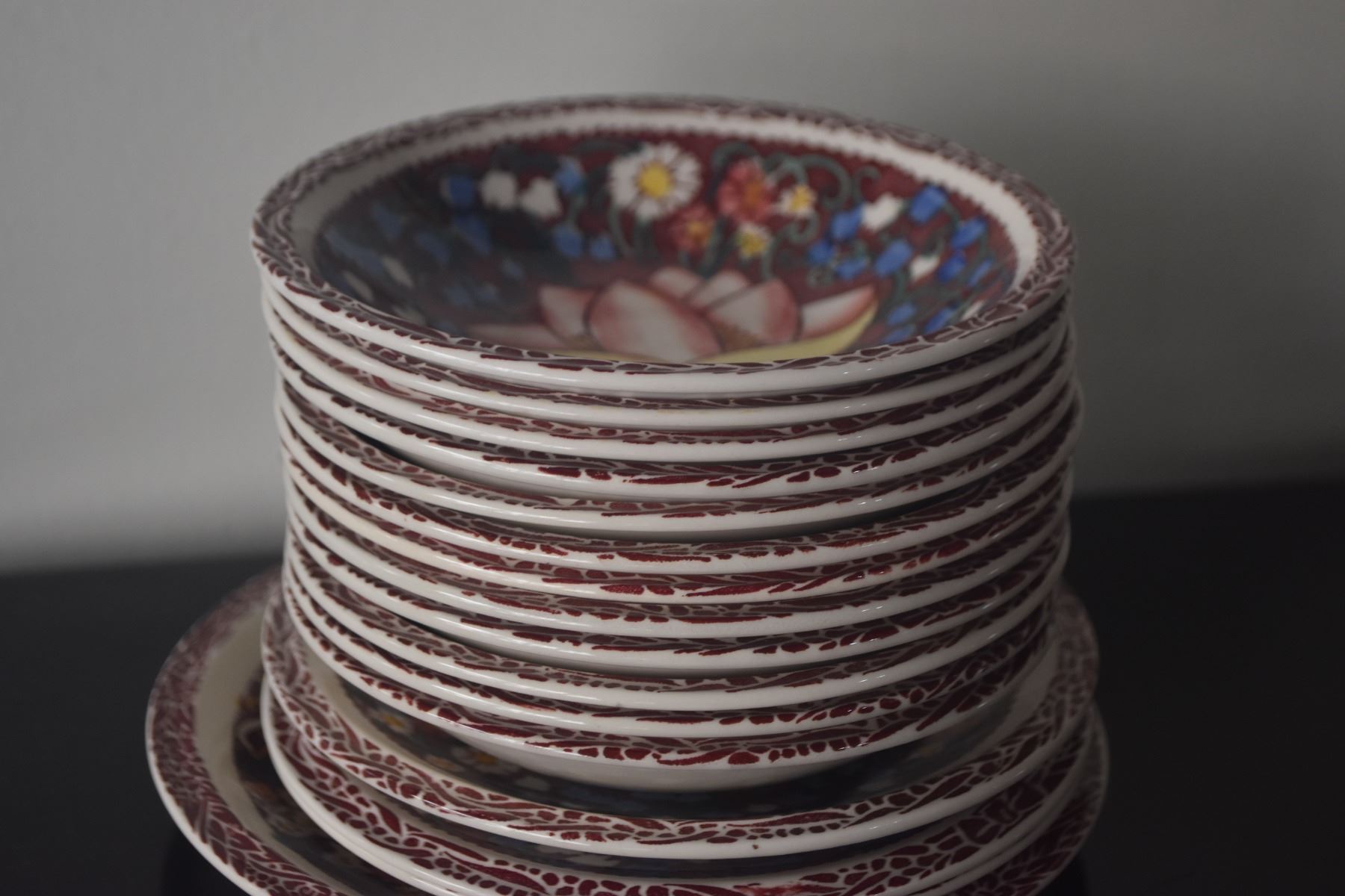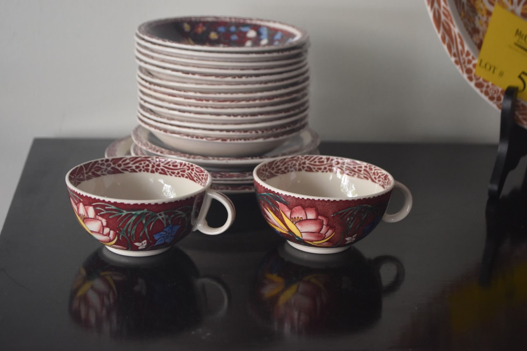 VERNON KILNS DON BLANDING "LEI LANI" PATTERN BOWLS, PLATES & CUPS (19 PCS)