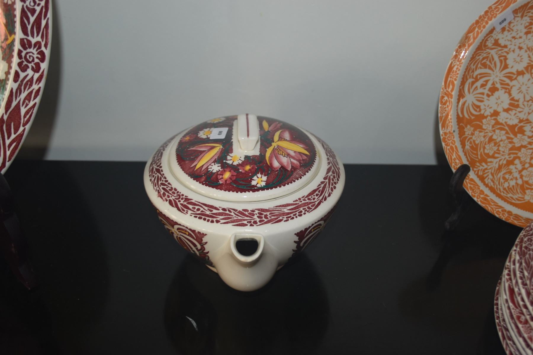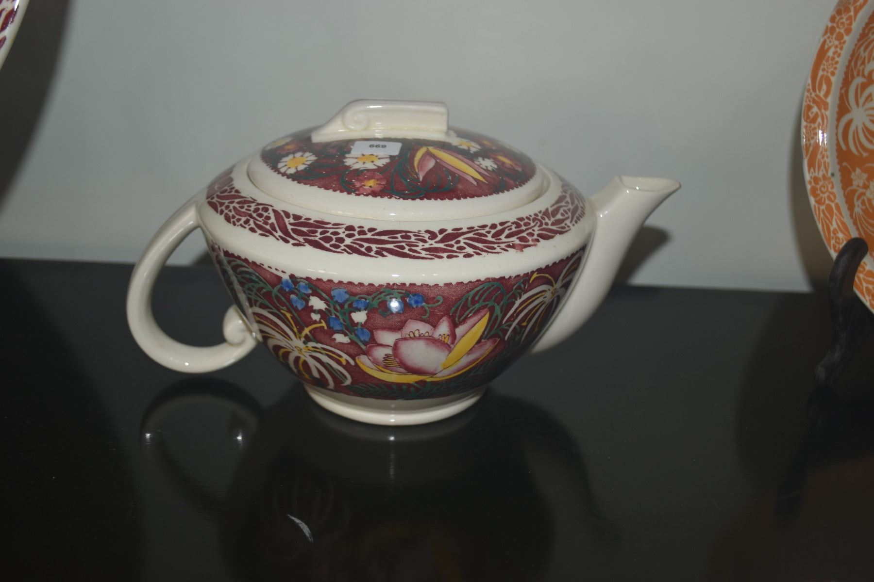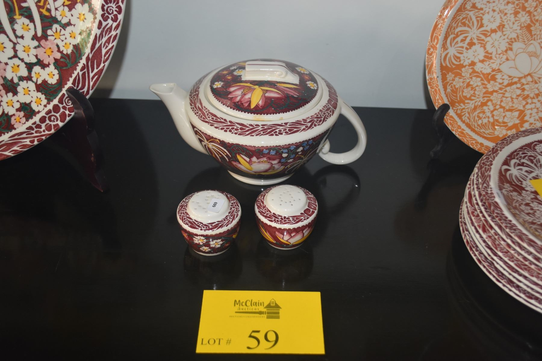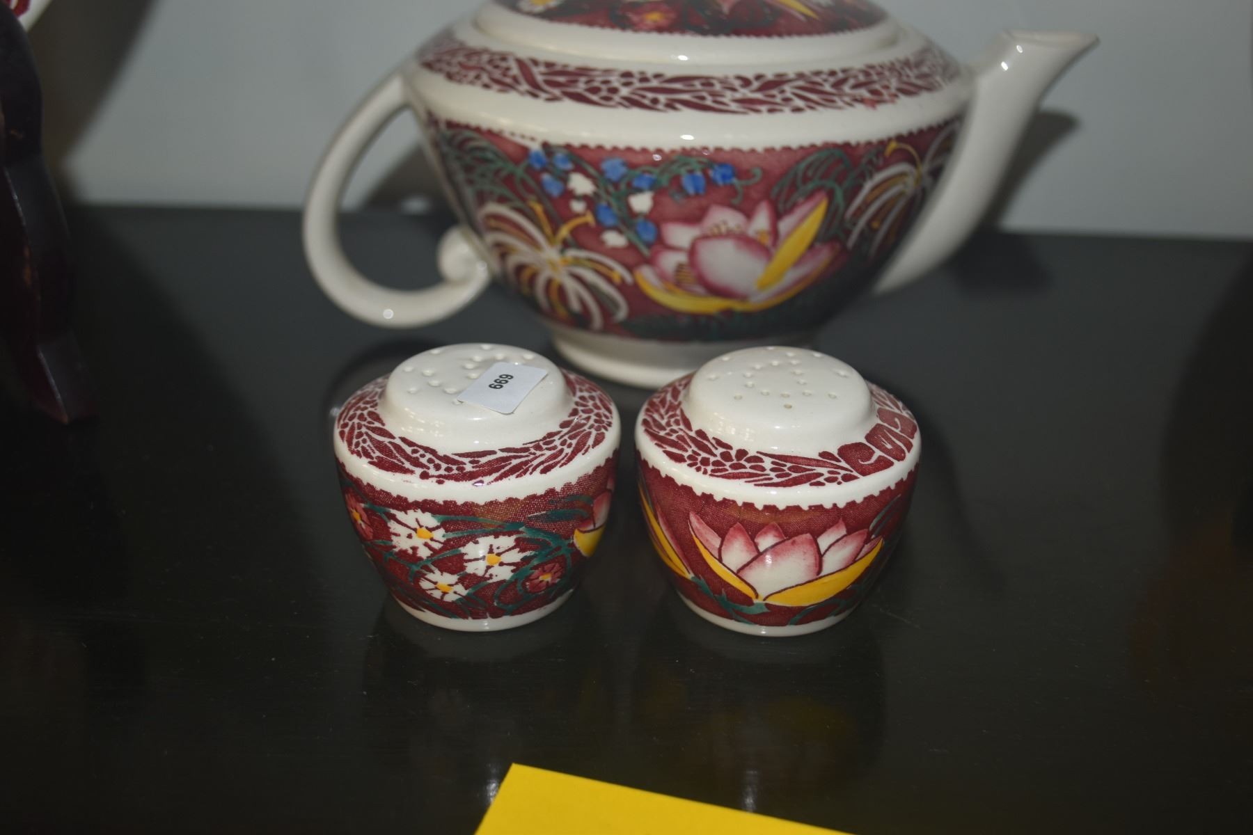 VERNON KILNS DON BLANDING "LEI LANI" PATTERN TEAPOT & SALT & PEPPER SHAKERS (3 PCS)