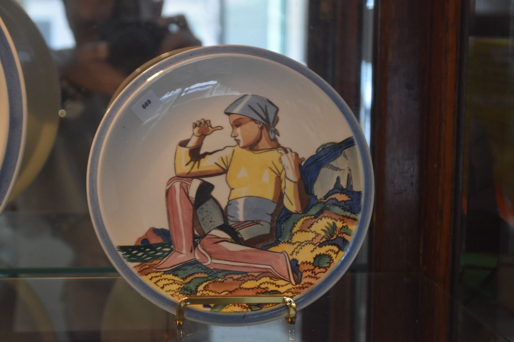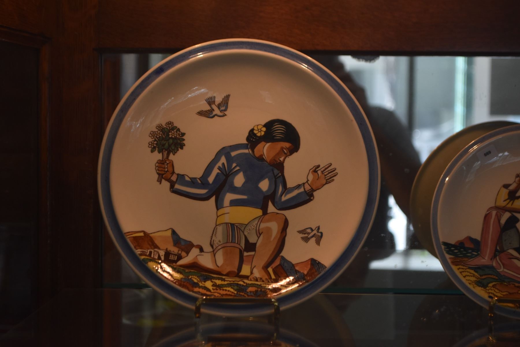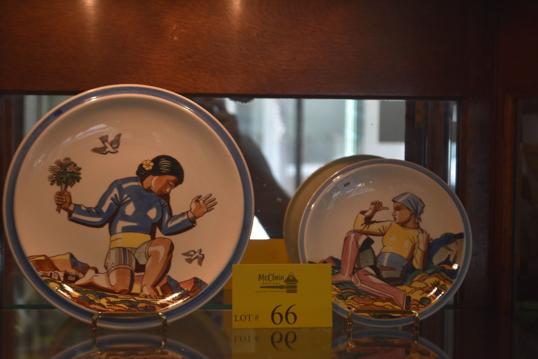 VERNON KILNS "SALAMINA" PATTERN 7 1/2" & 10 1/4" PLATES (ROCKWELL KENT) (2 PCS) (DOES NOT INCLUDE STAND)