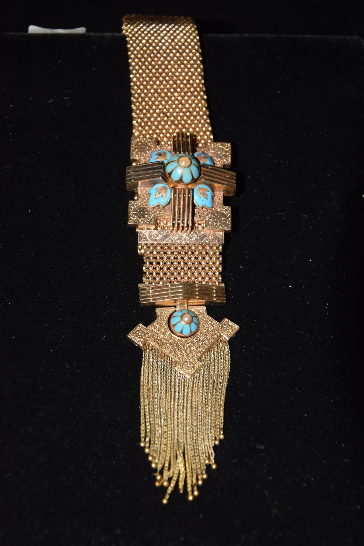 VICTORIAN 14K (TESTED) & ENAMEL FRINGE SLIDE BRACELET (76.3G)