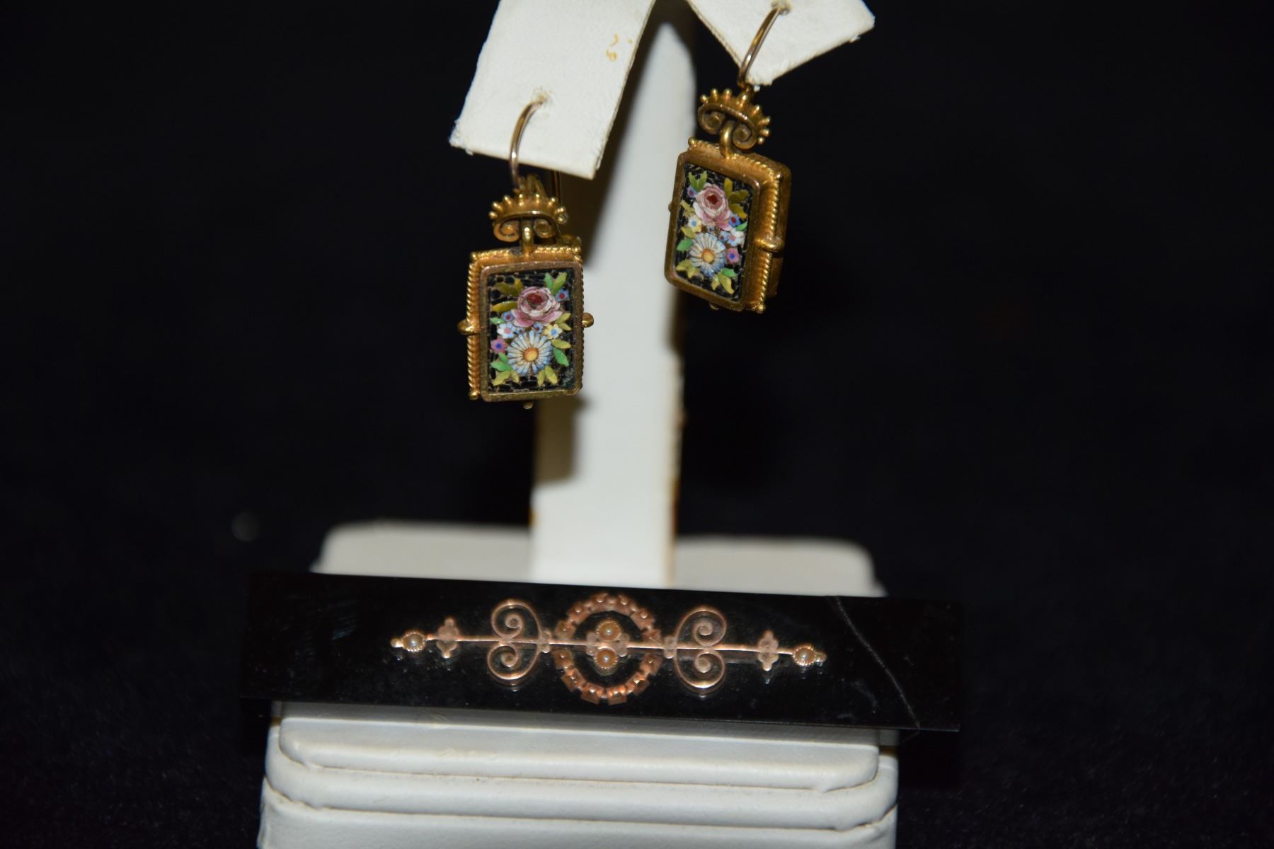 VICTORIAN EARRINGS & ONYX PIN (REPAIRED) (MOURNING JEWELRY) (2 PCS)