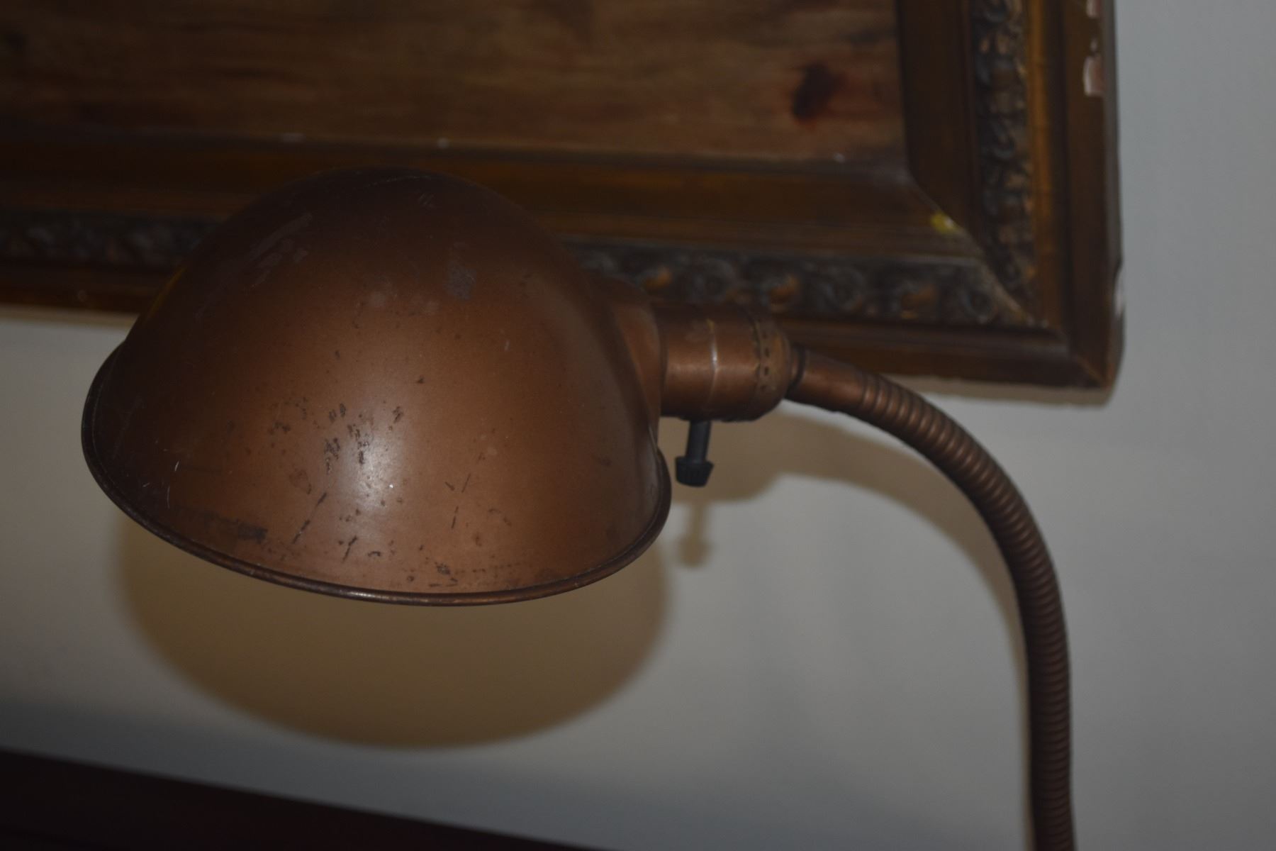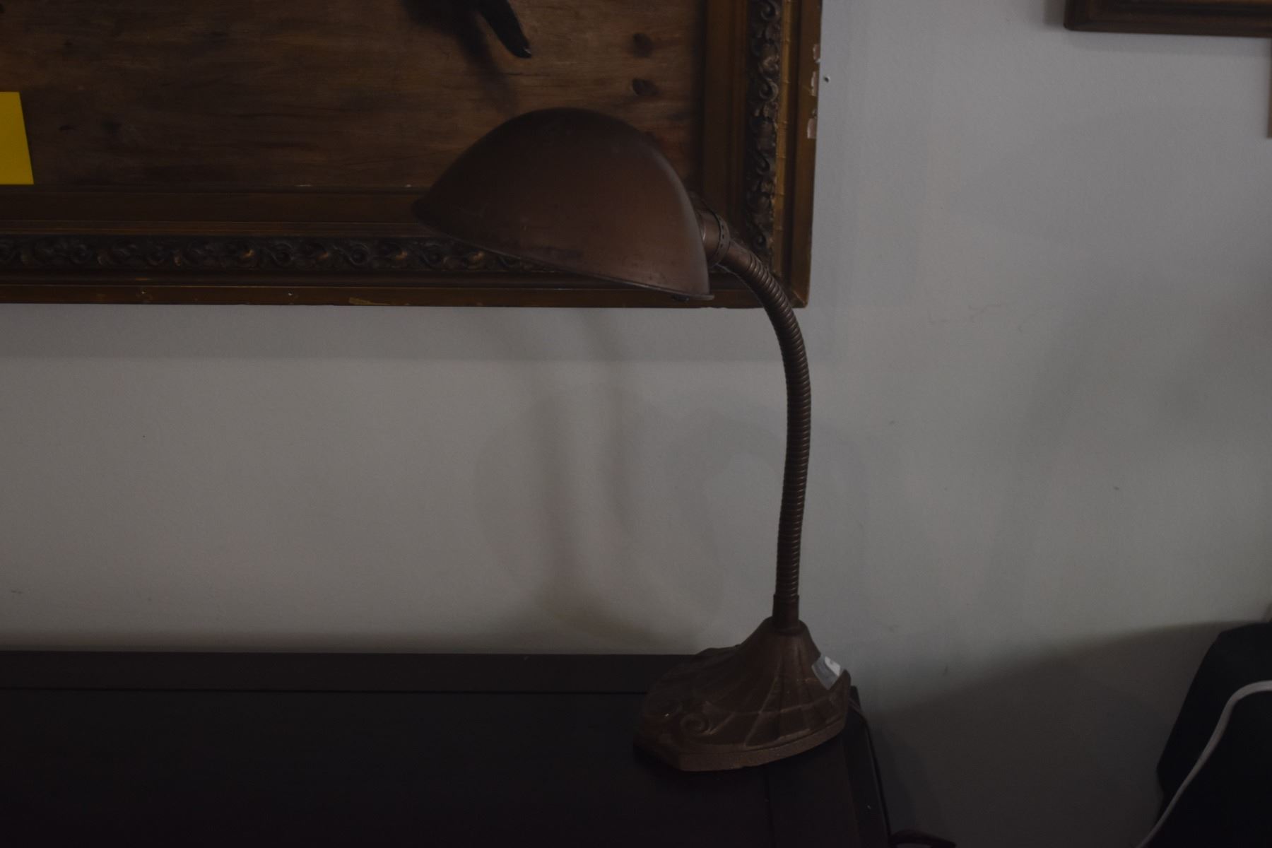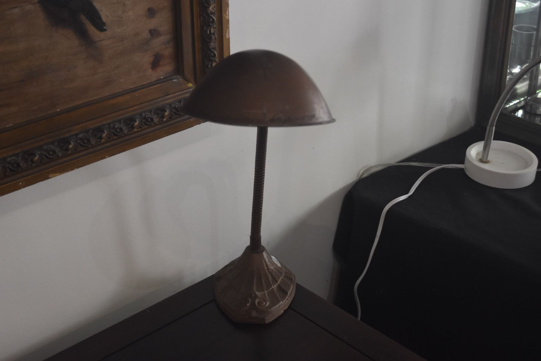 VINTAGE ART DECO GOOSENECK DESK LAMP W/CAST IRON BASE & METAL SHADE