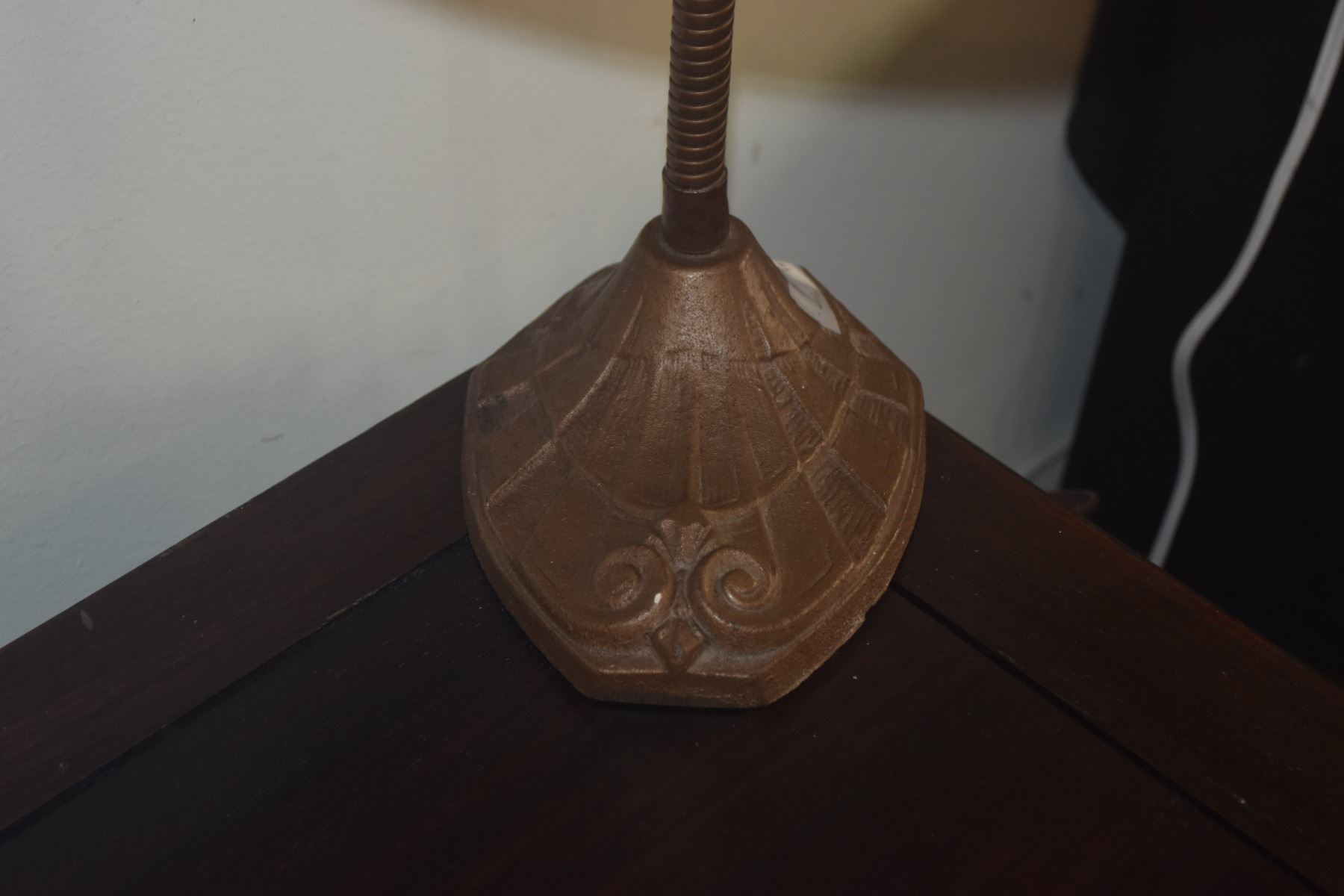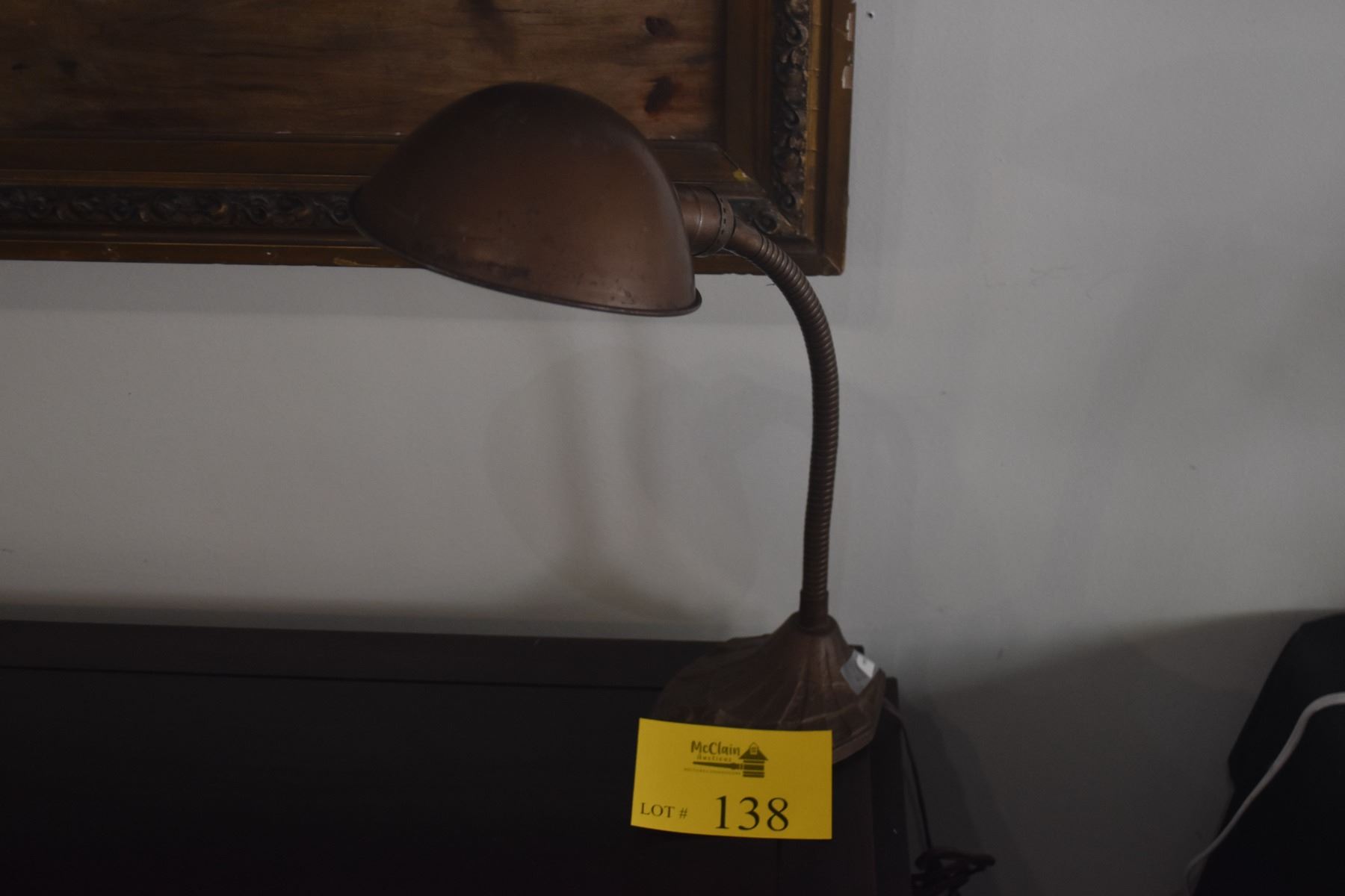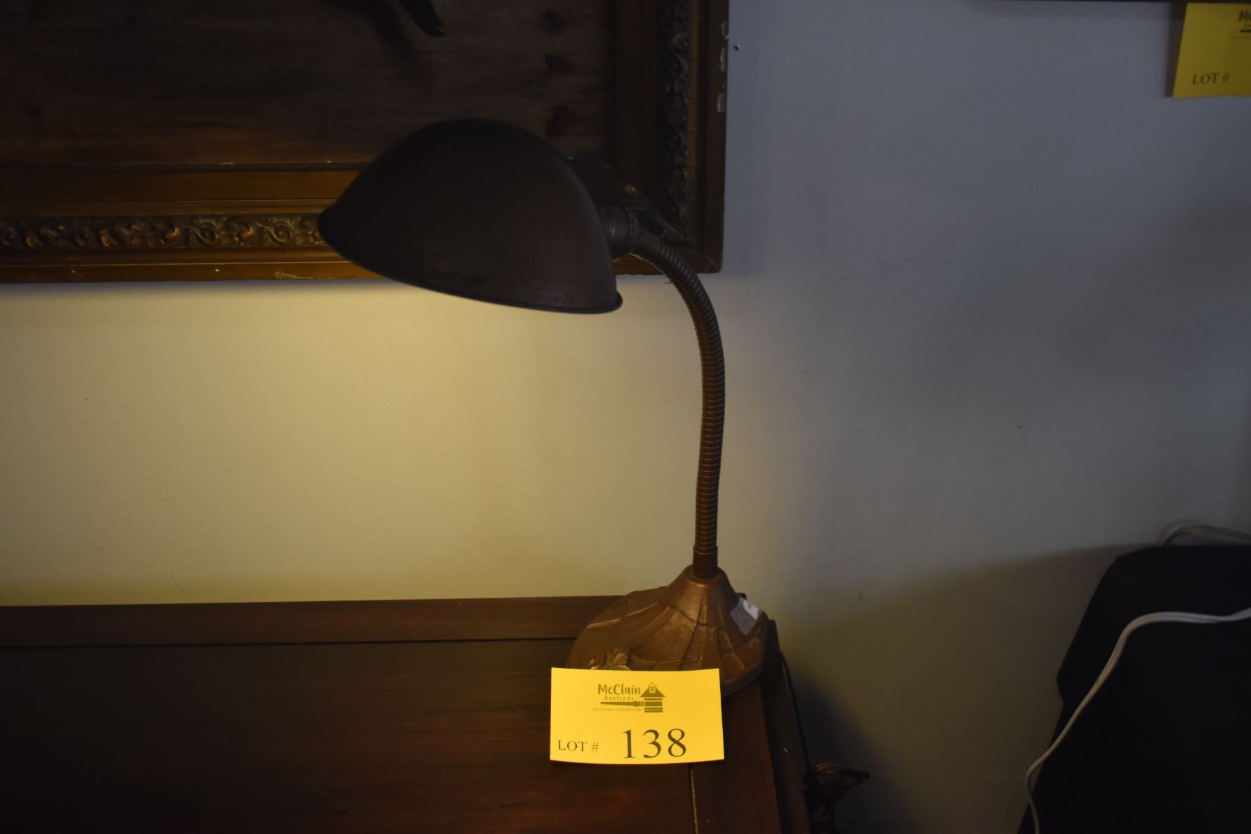 VINTAGE ART DECO GOOSENECK DESK LAMP W/CAST IRON BASE & METAL SHADE