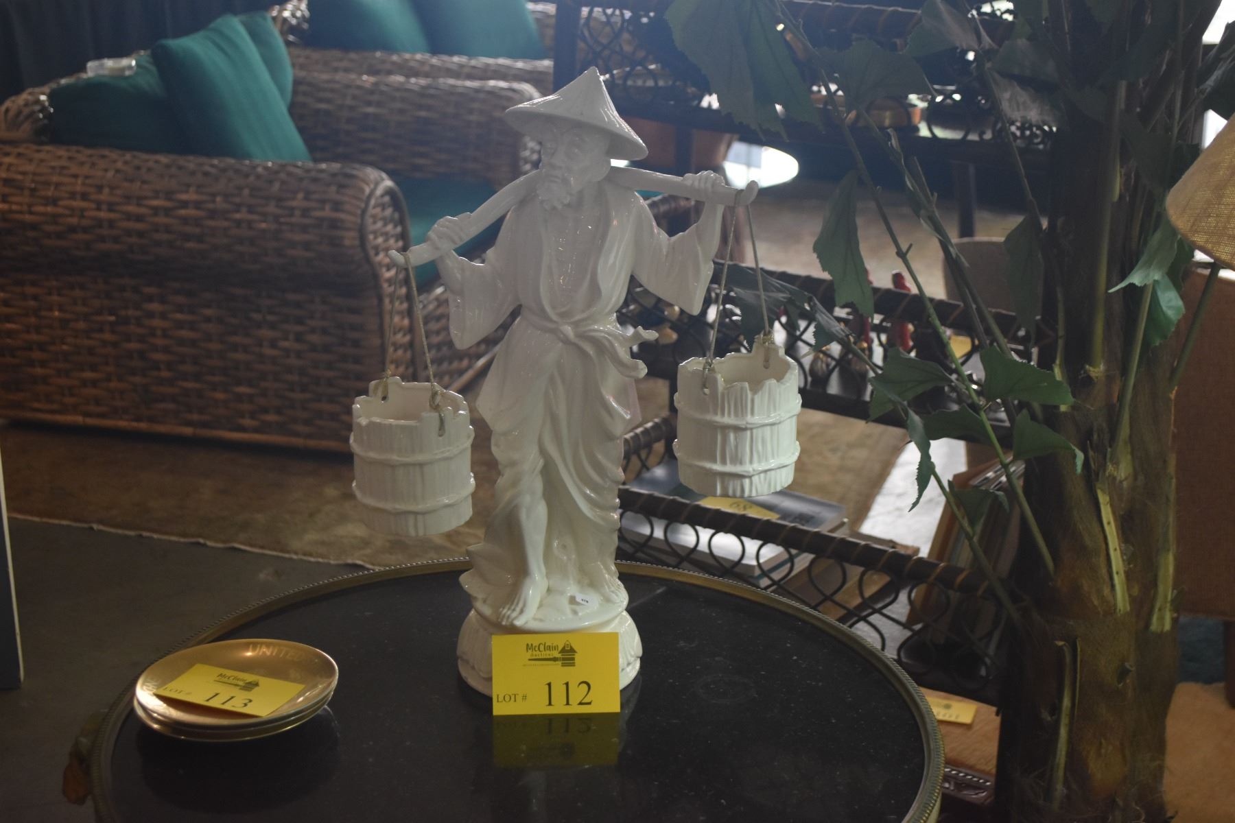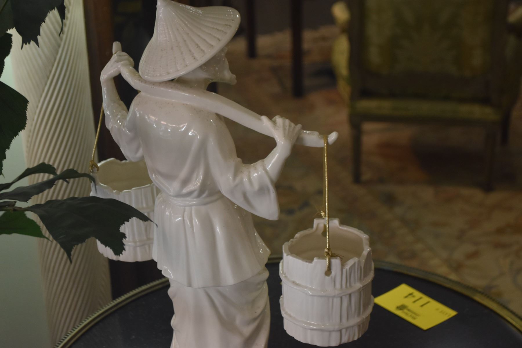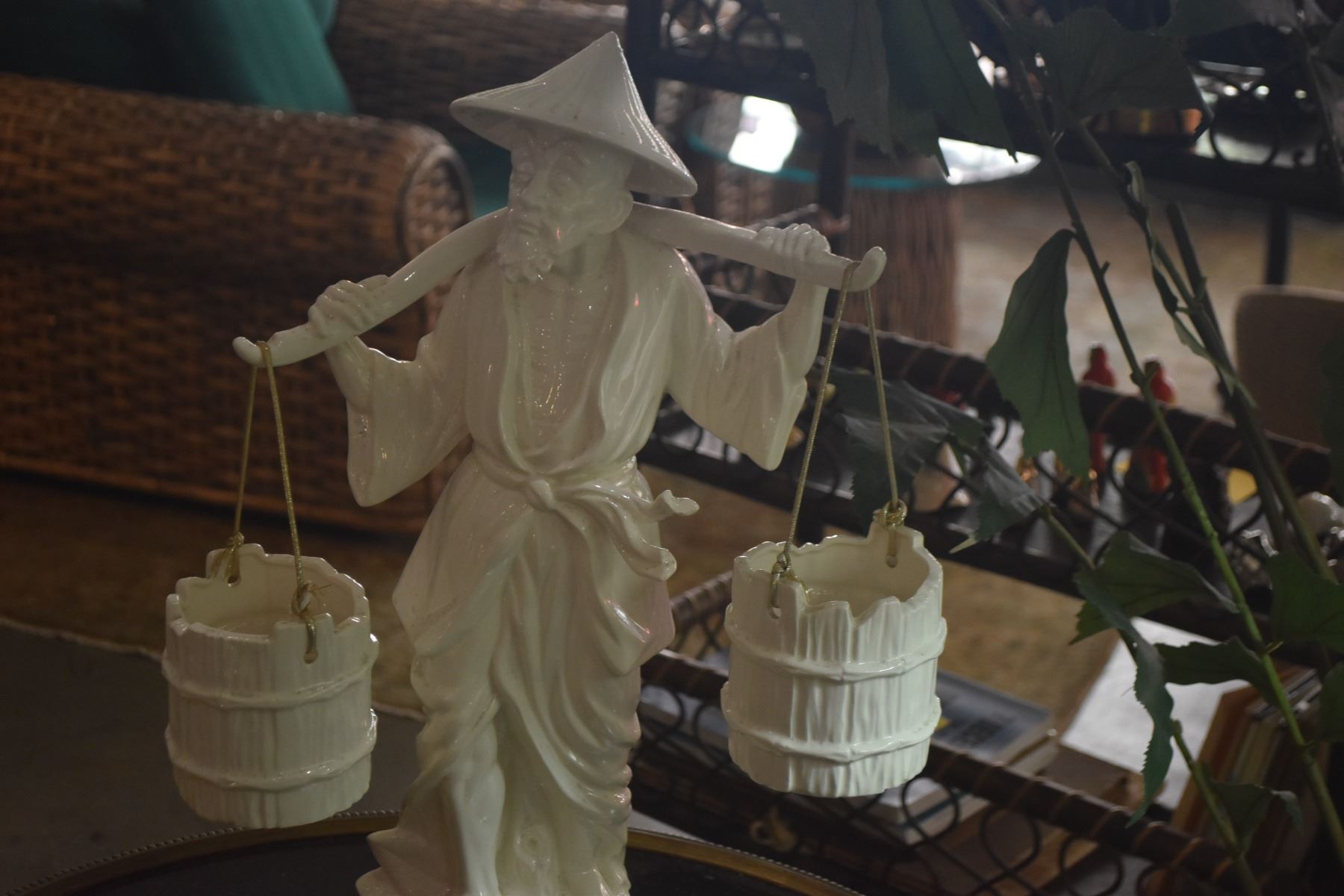 VINTAGE BLANC DE CHINE PORCELAIN STATUE OF ASIAN MAN CARRYING WATER