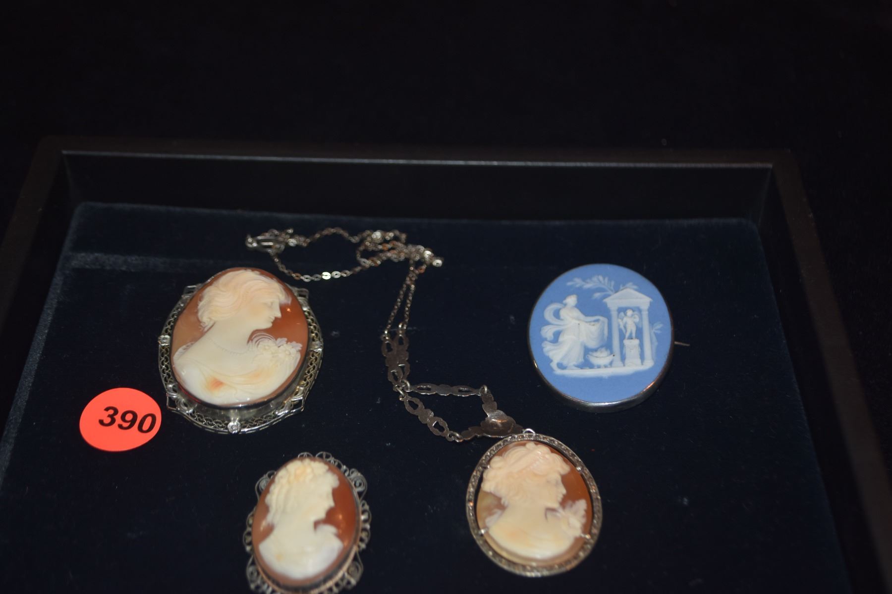 VINTAGE CAMEOS: 1 SERLING SILVER SETTING, 3 SET IN 800 SILVER (4 PCS)