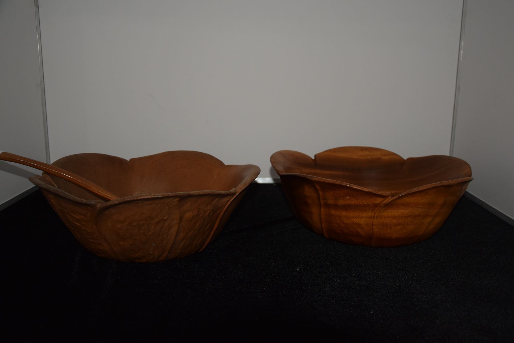 VINTAGE CARVED WOOD BOWLS BY SORENSEN & WOOD SPOON (3 PCS)