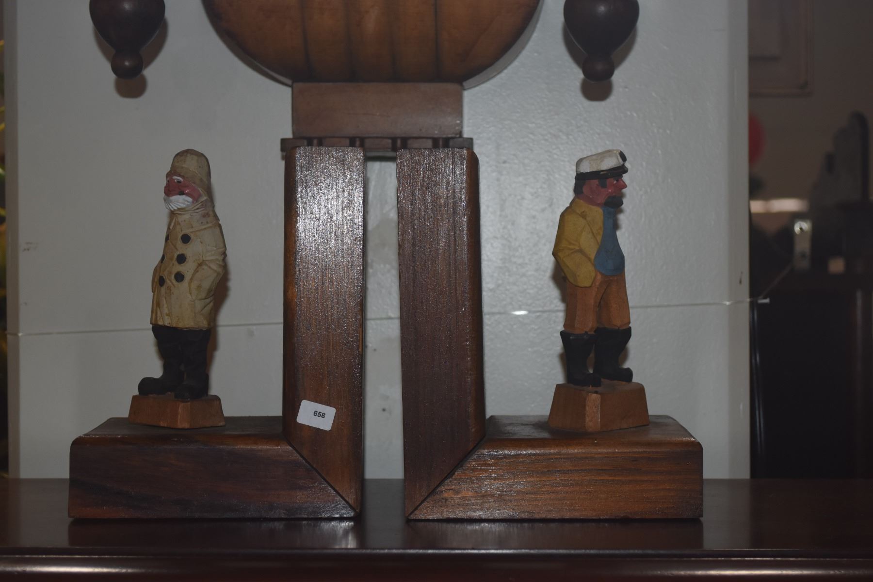 VINTAGE CARVED WOODEN SEA CAPTAIN BOOKENDS (2 PCS)