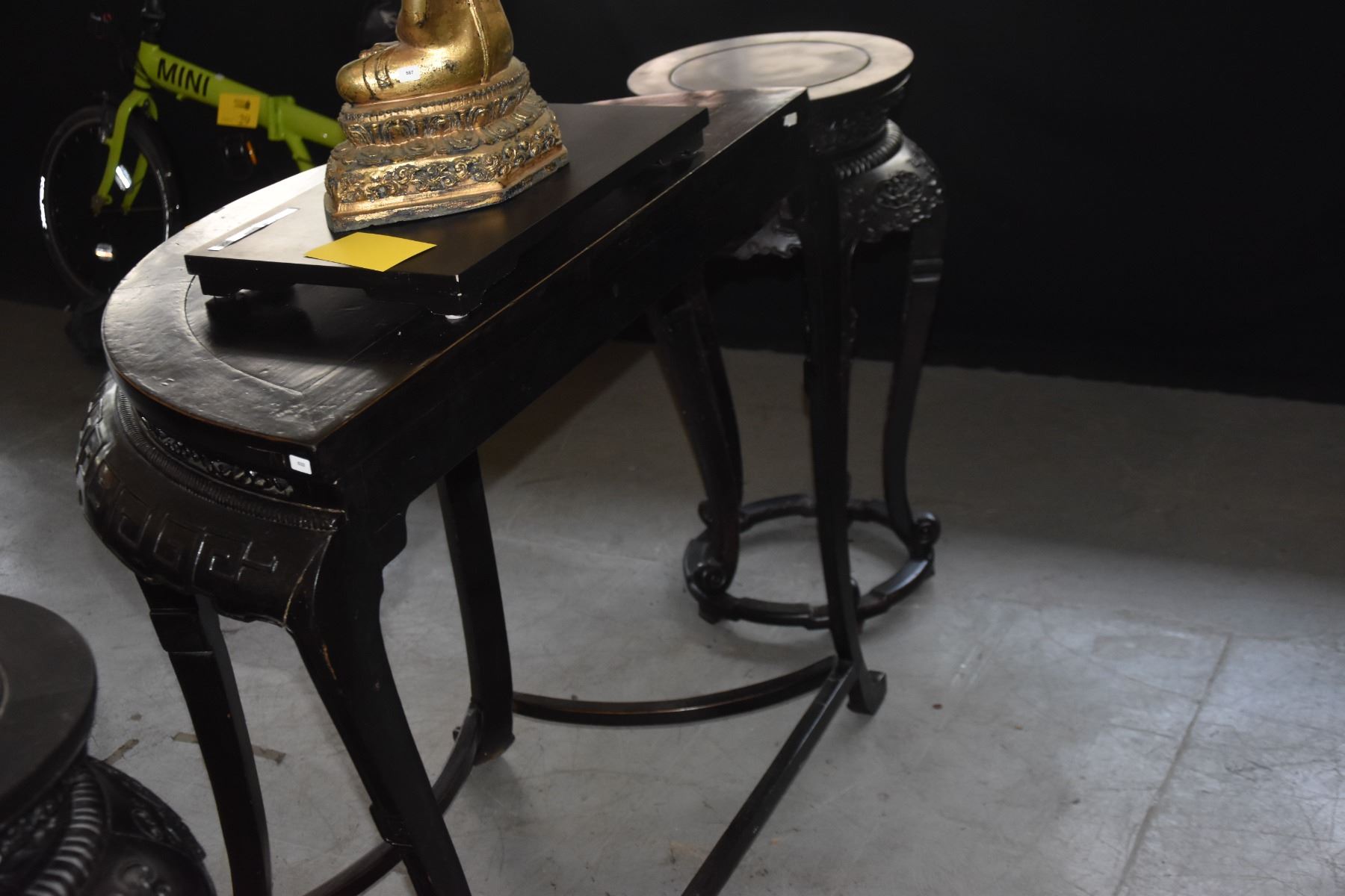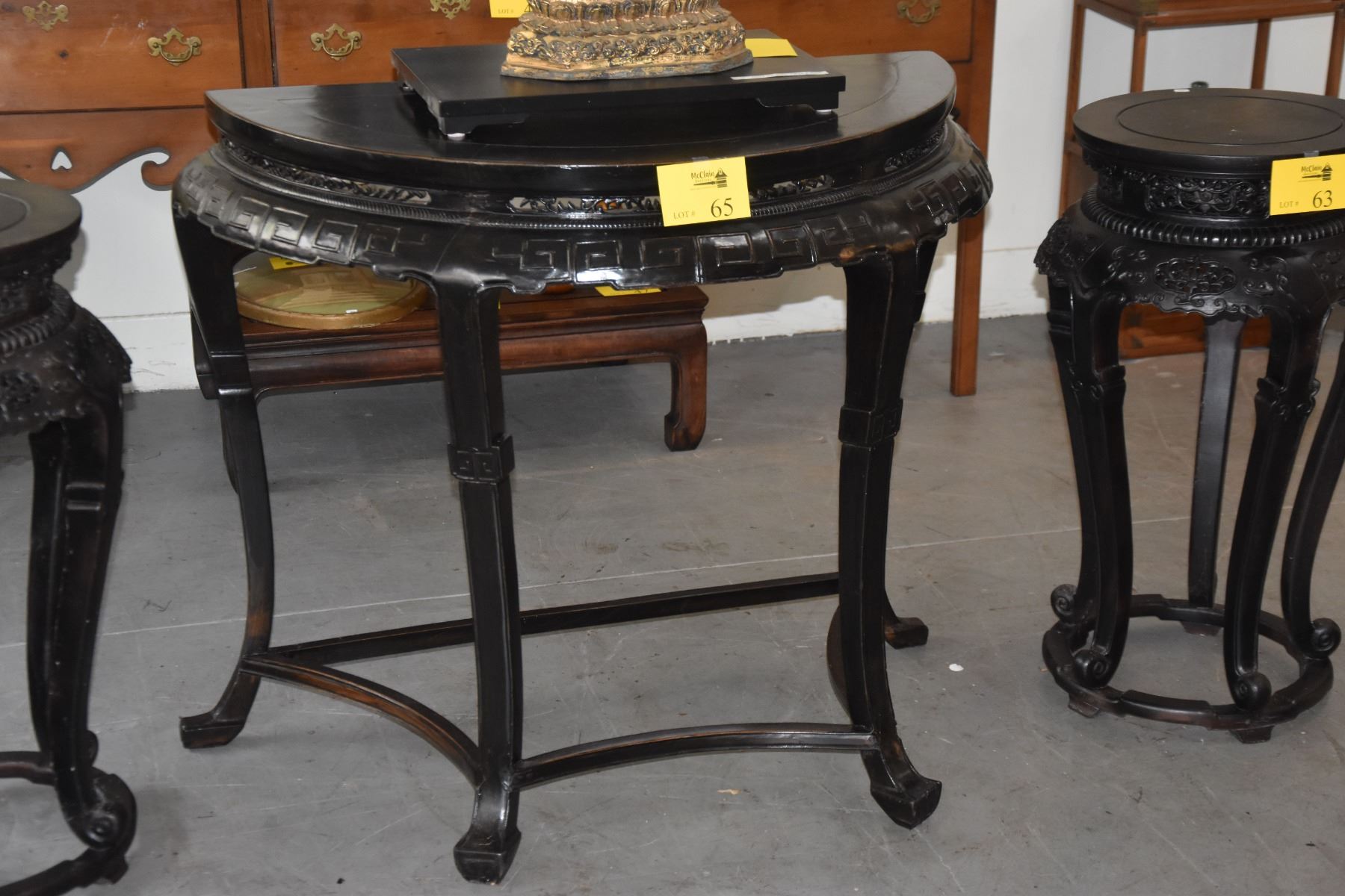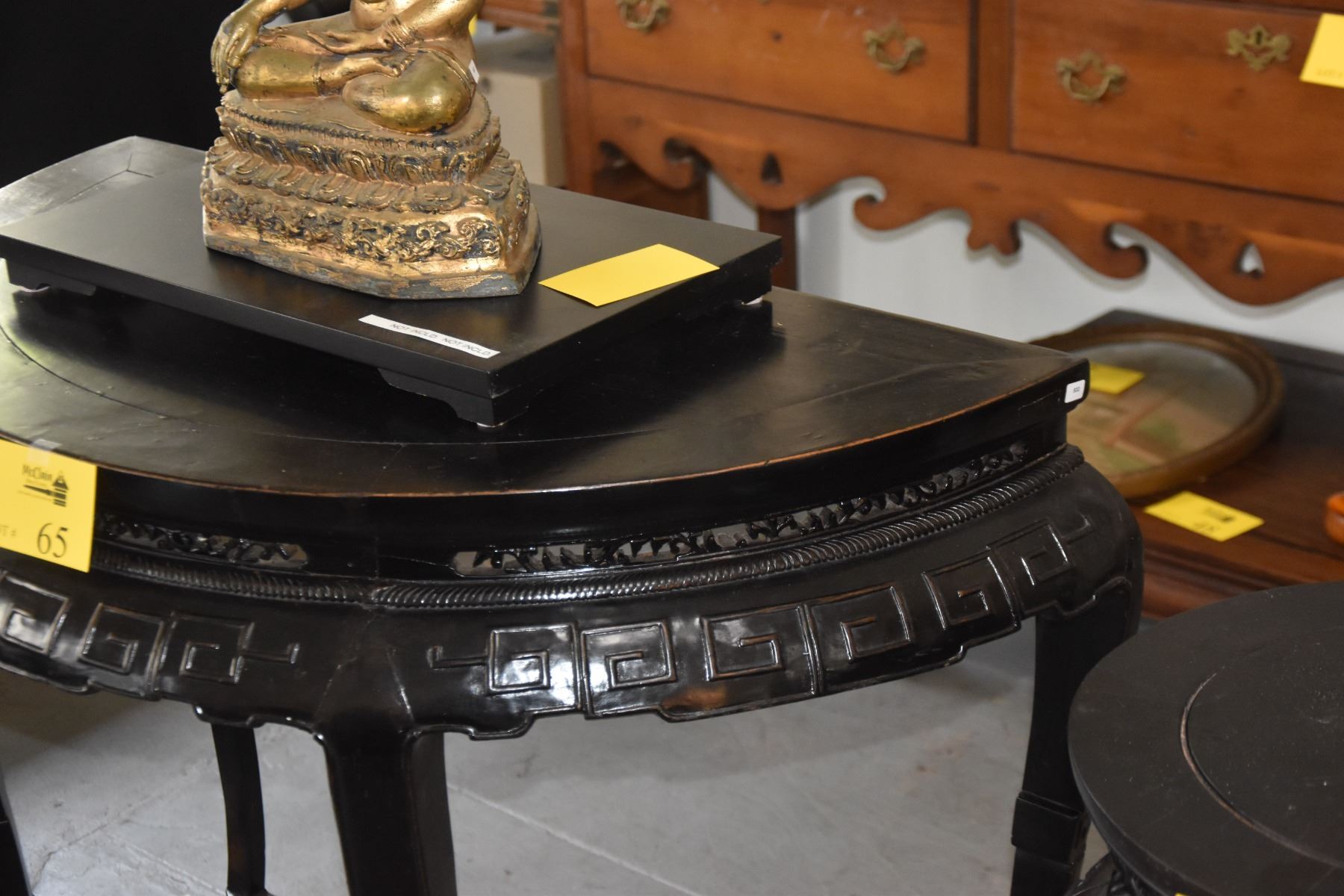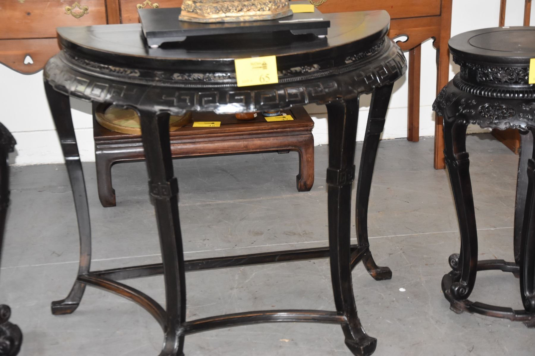 VINTAGE CHINESE BLACK LACQUERED HALF MOON TABLE W/CABRIOLE LEGS (35" X 38" X 19")