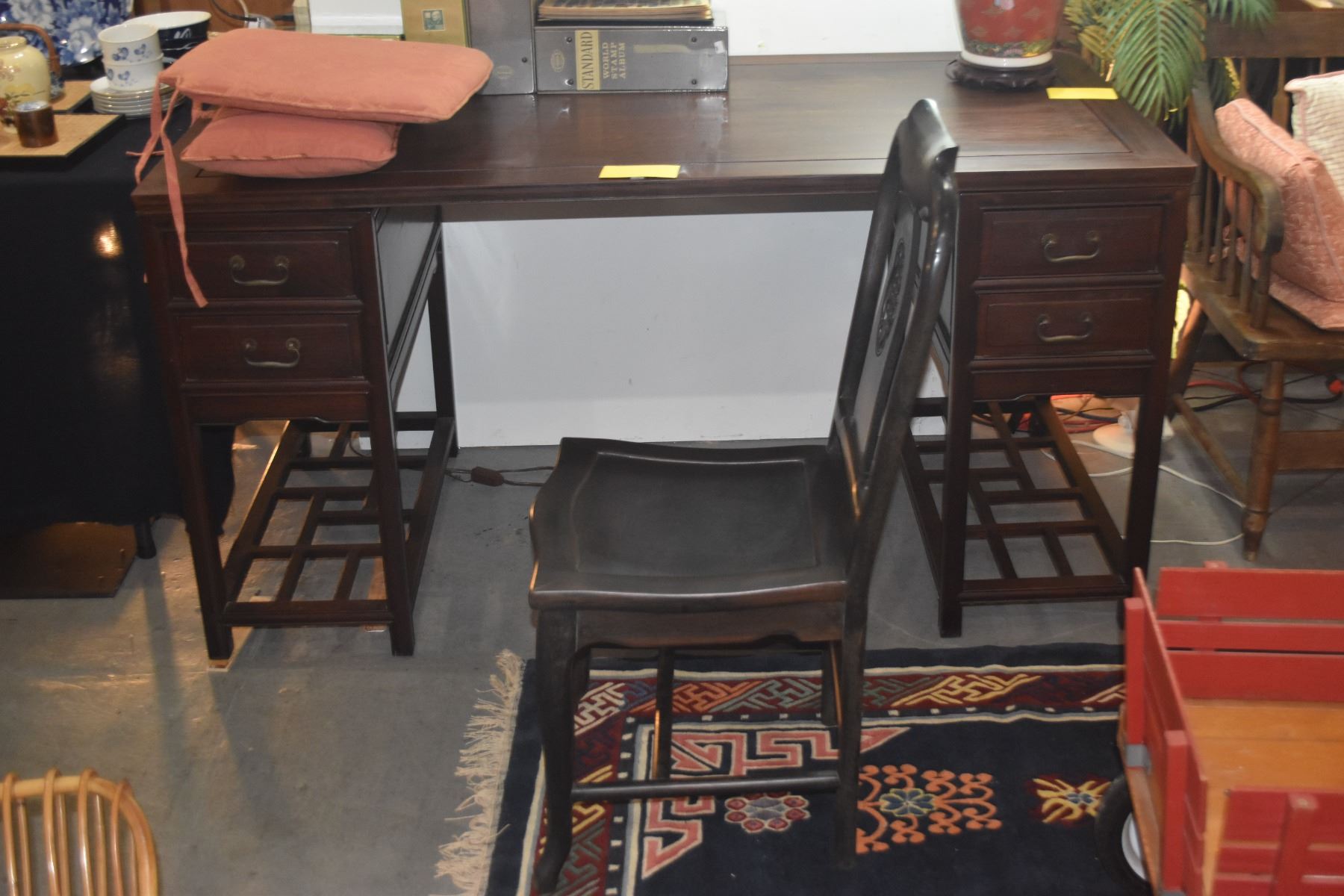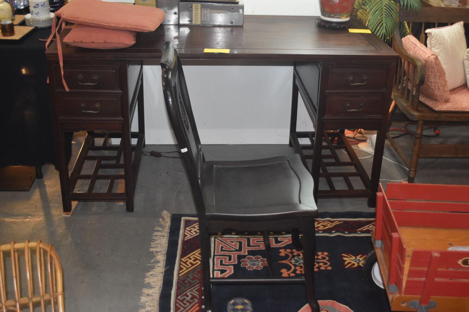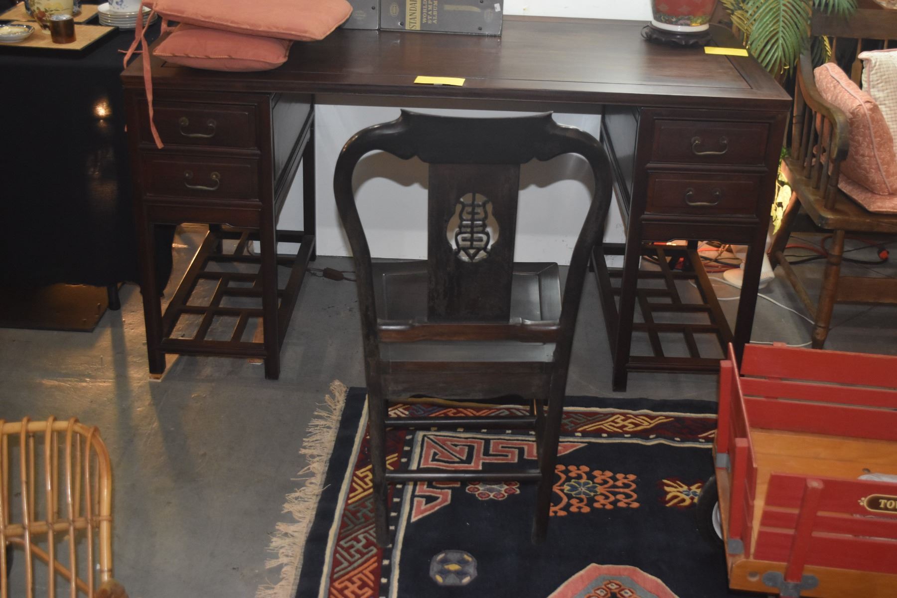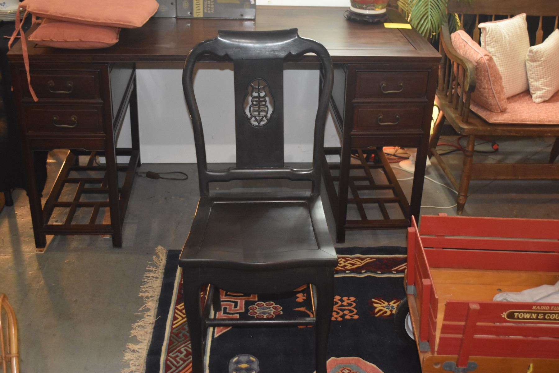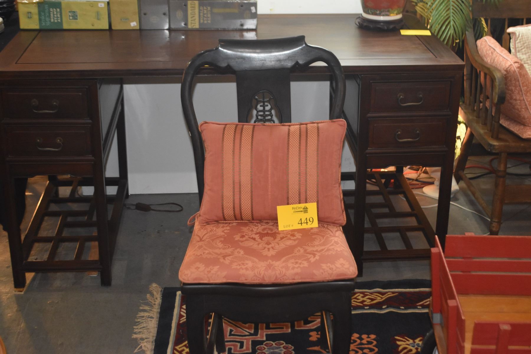 VINTAGE CHINESE BLACKWOOD CHAIR W/LONGLIFE SYMBOL & 2 CUSHIONS