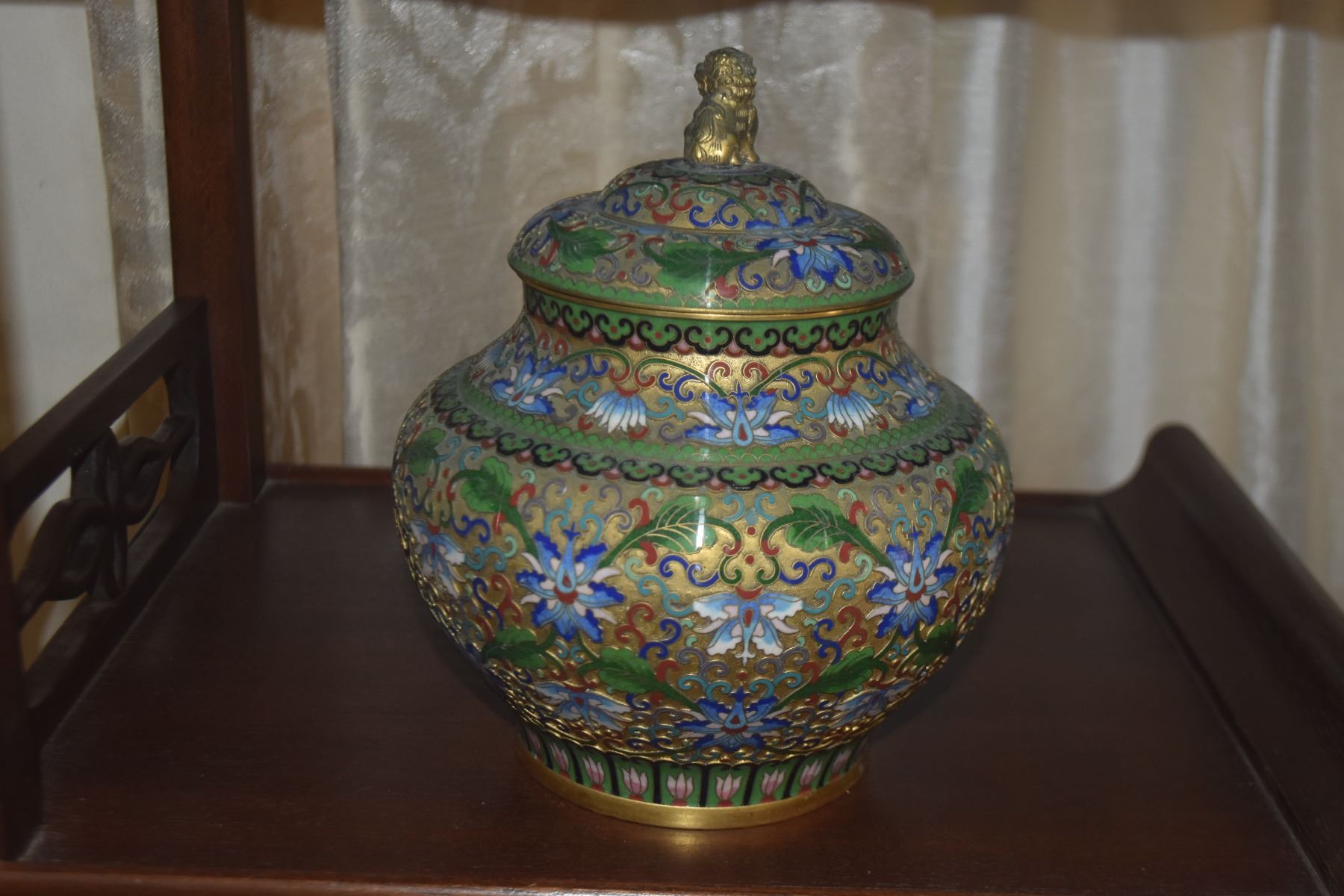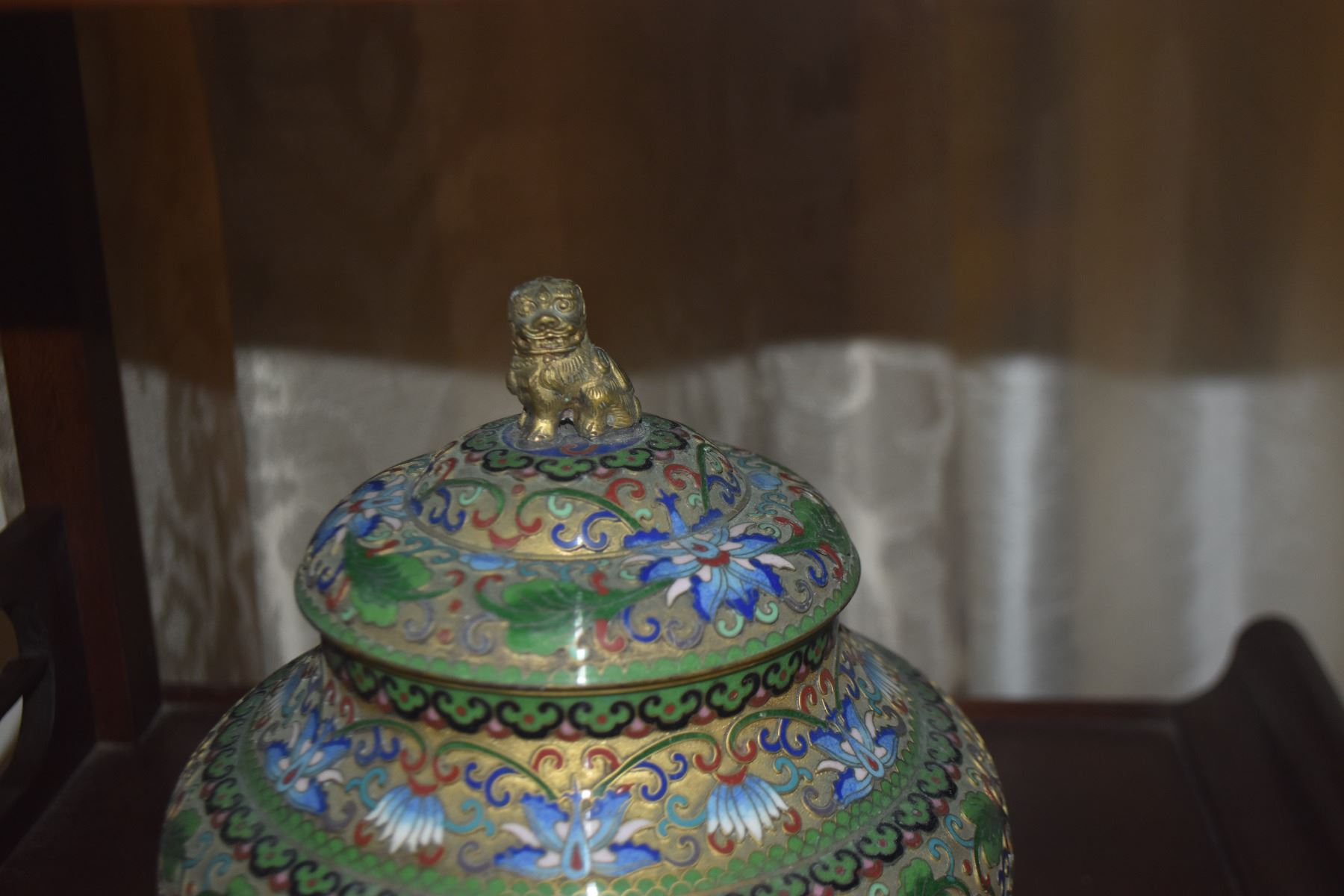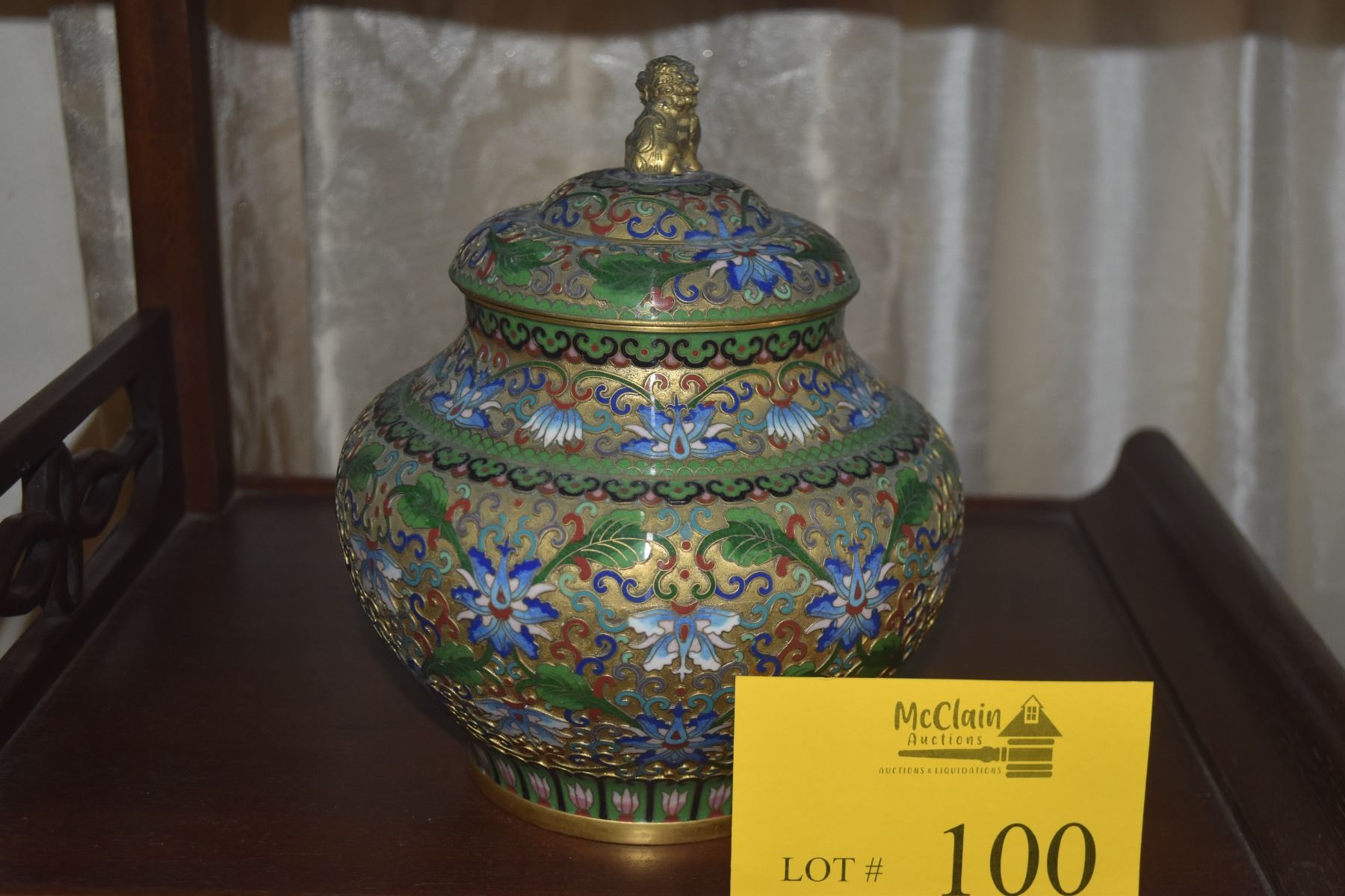 VINTAGE CHINESE CLOISONNE GINGER JAR W/LION FINIAL