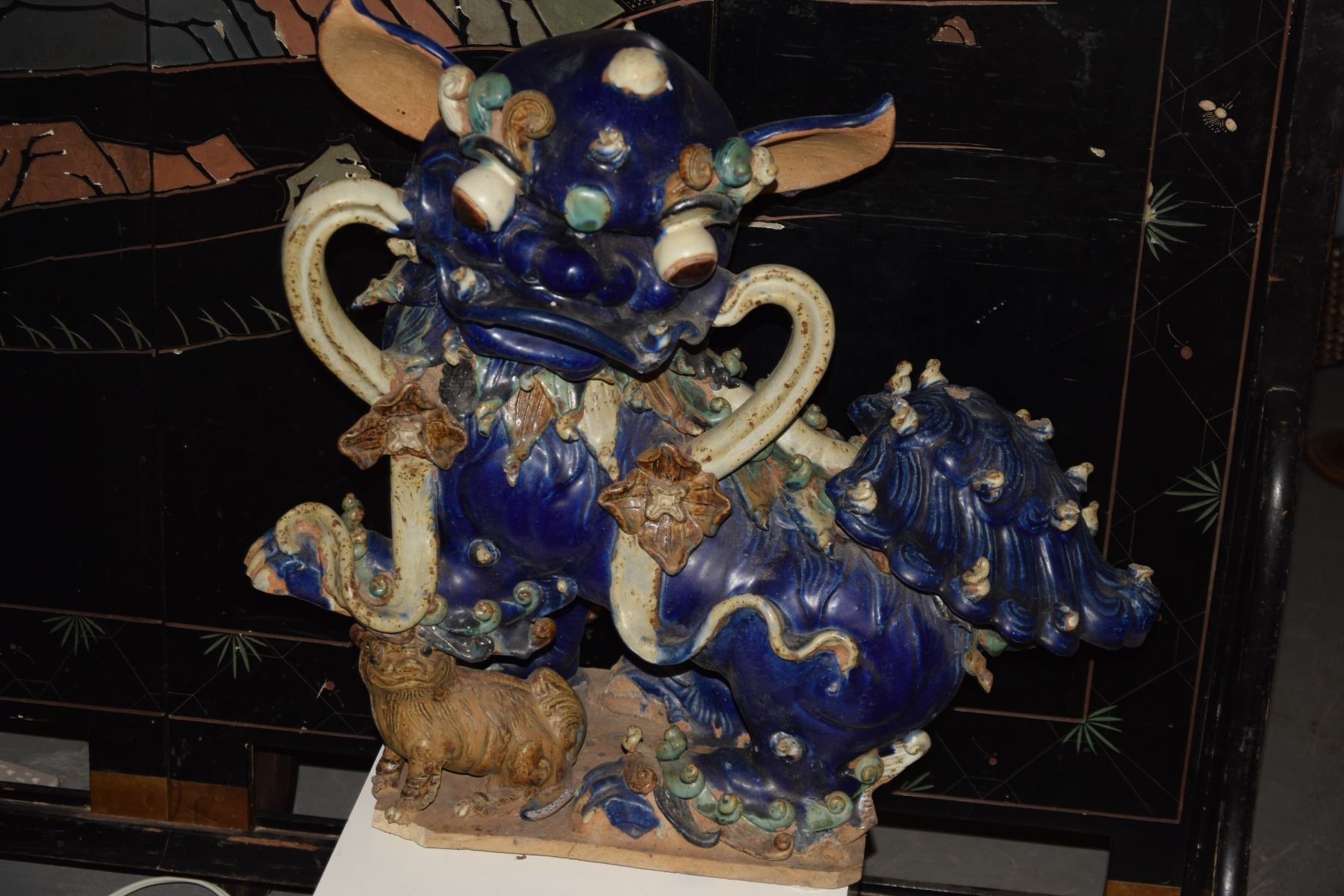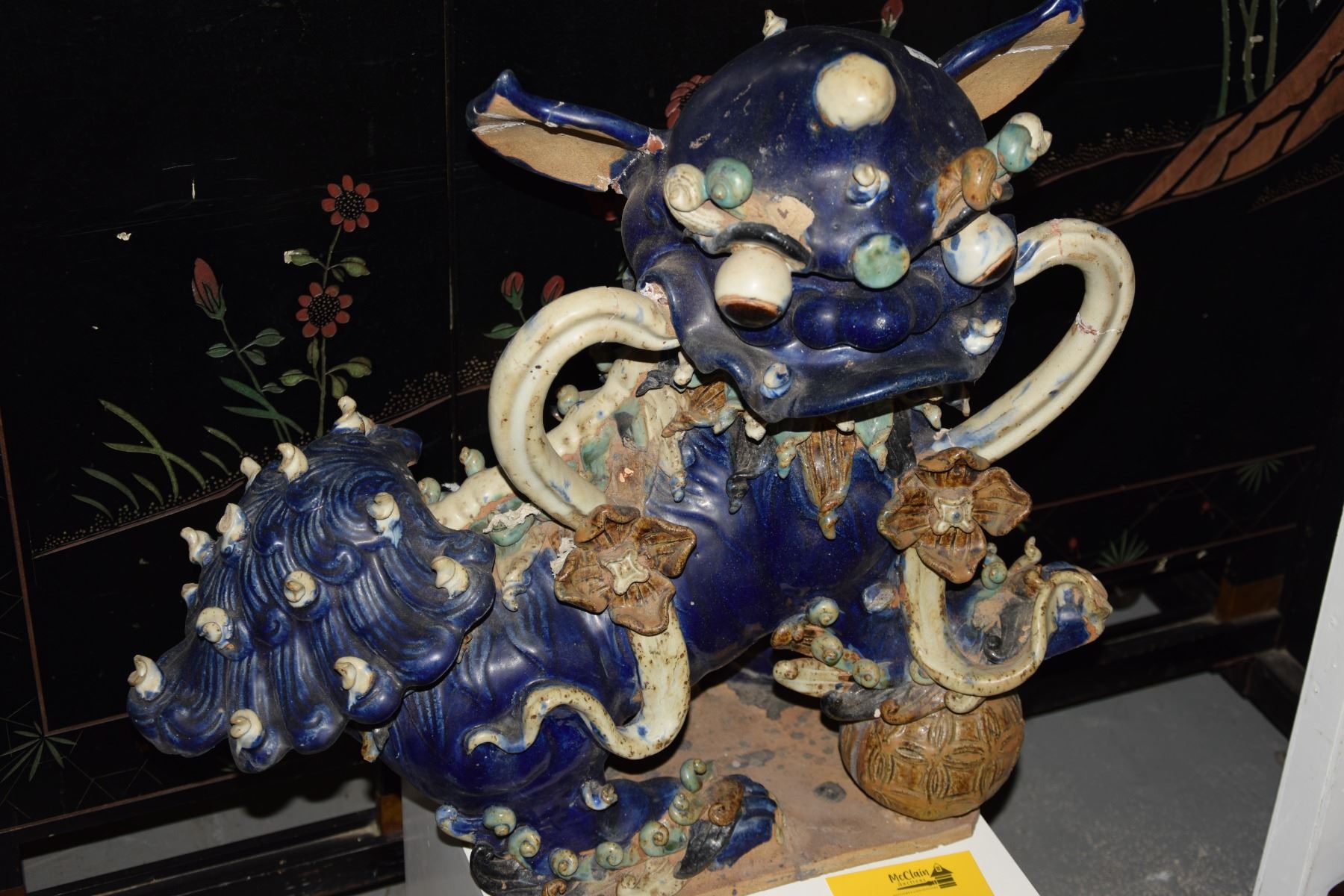 VINTAGE COBALT BLUE SHIWAN CHINESE GUARDIAN LIONS (PAIR)