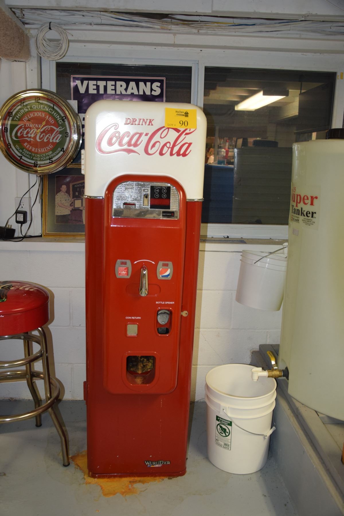 VINTAGE COCA COLA DISPENSER (STAYS COLD, DOES NOT DISPENSE) (57" H X 16" W X 22" D)
