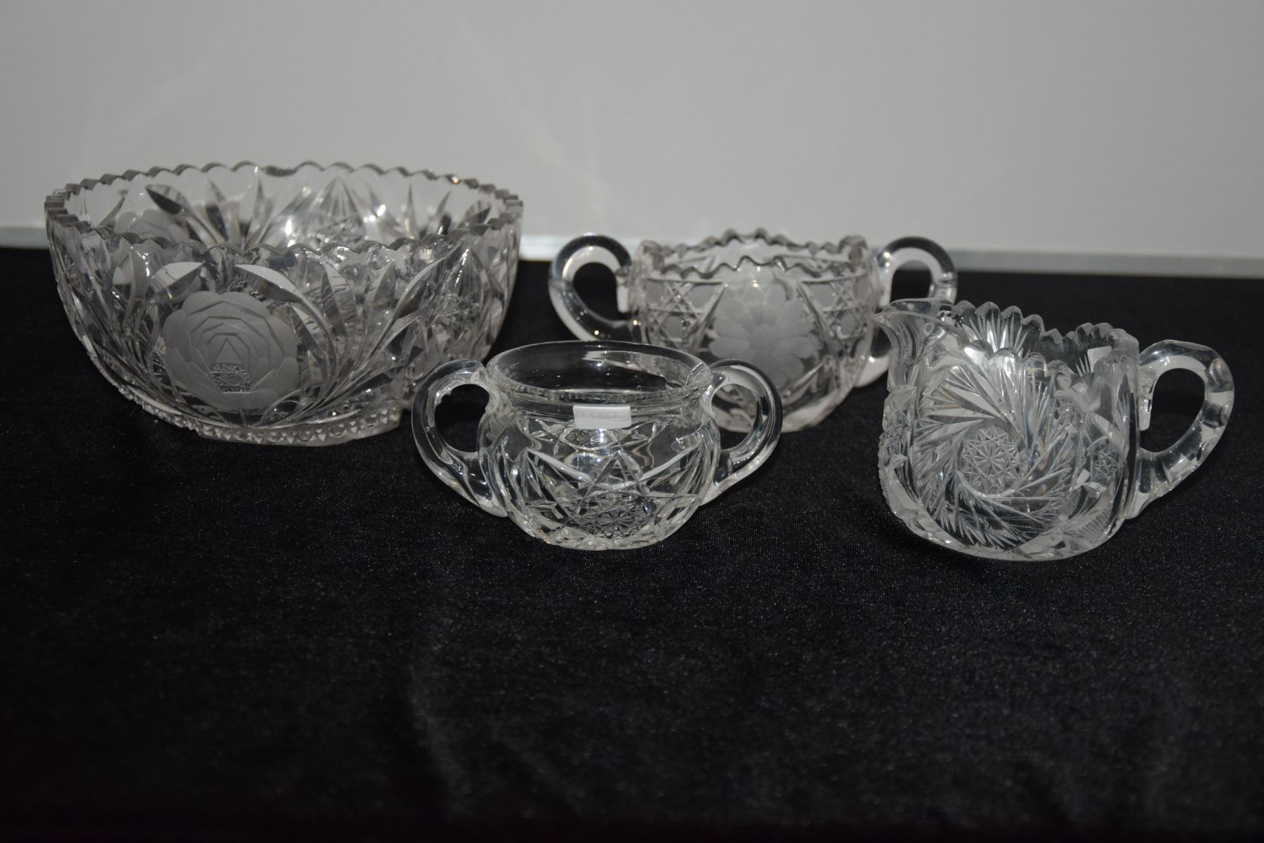 VINTAGE CUT CRYSTAL CREAM, SUGARS, BOWL & VASES (6 PCS)