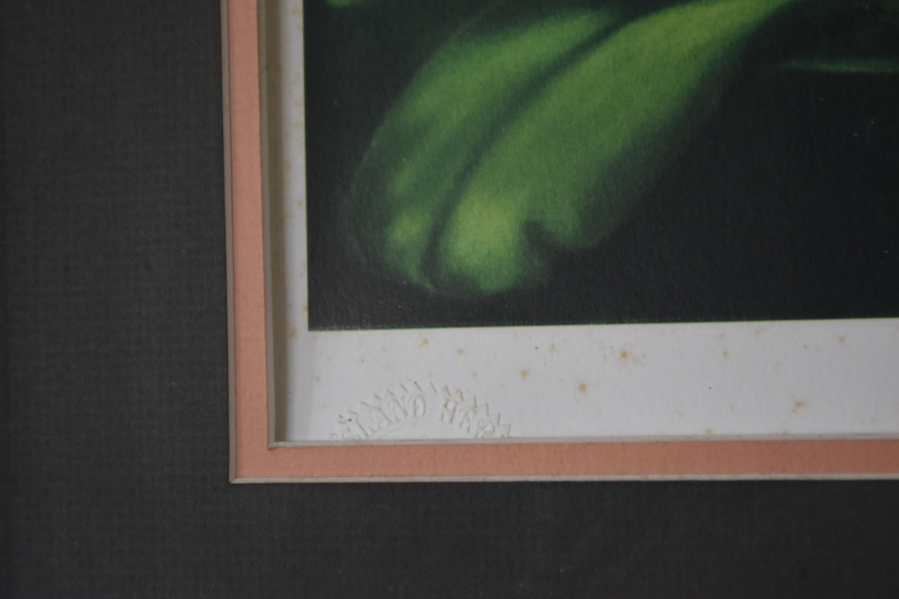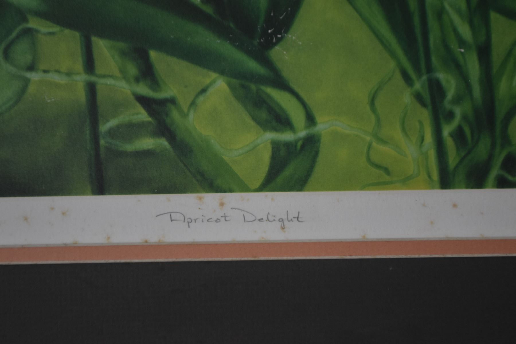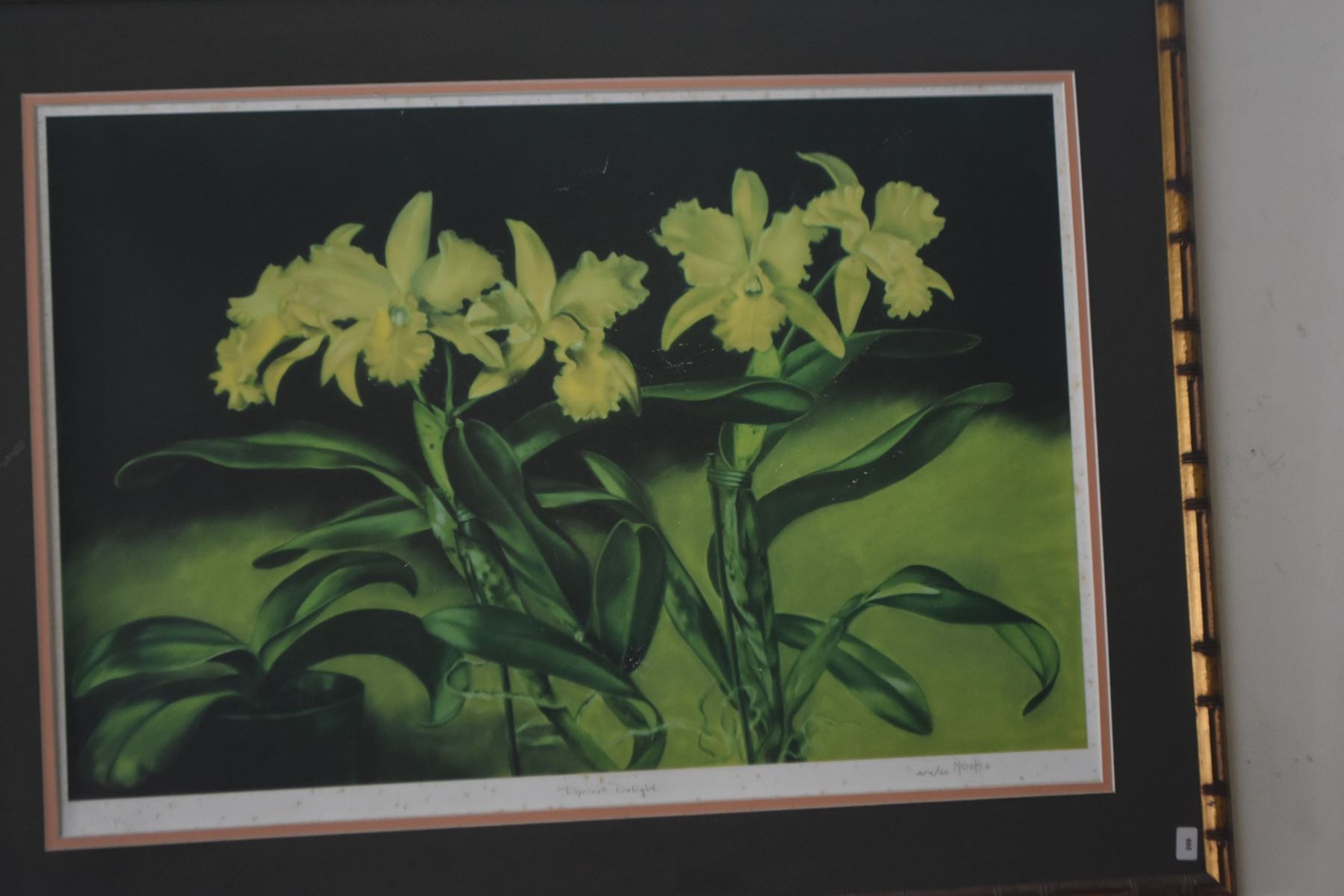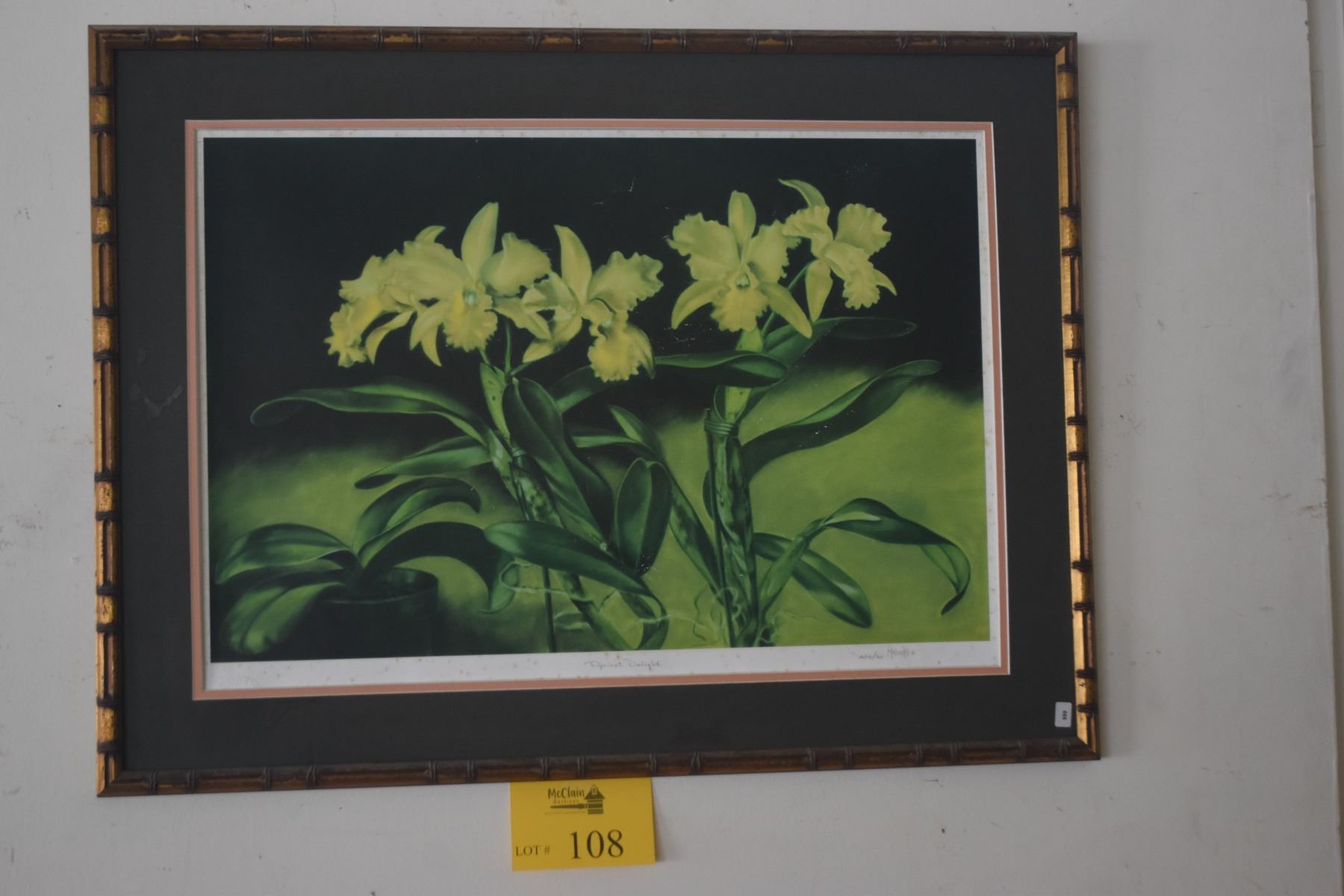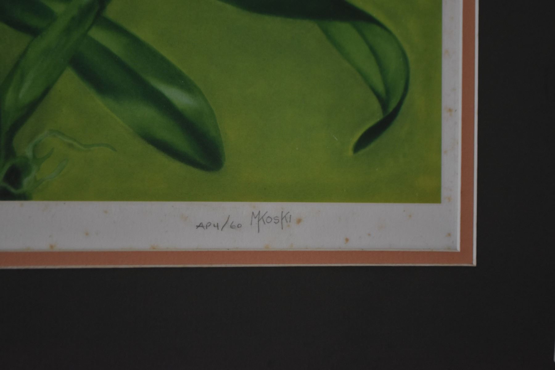 VINTAGE FRAMED PRINT, YELLOW ORCHIDS "APRICOT DELIGHT"; SIGNED M. KOSKI, AP 4/60 (30" X 22 1/2")