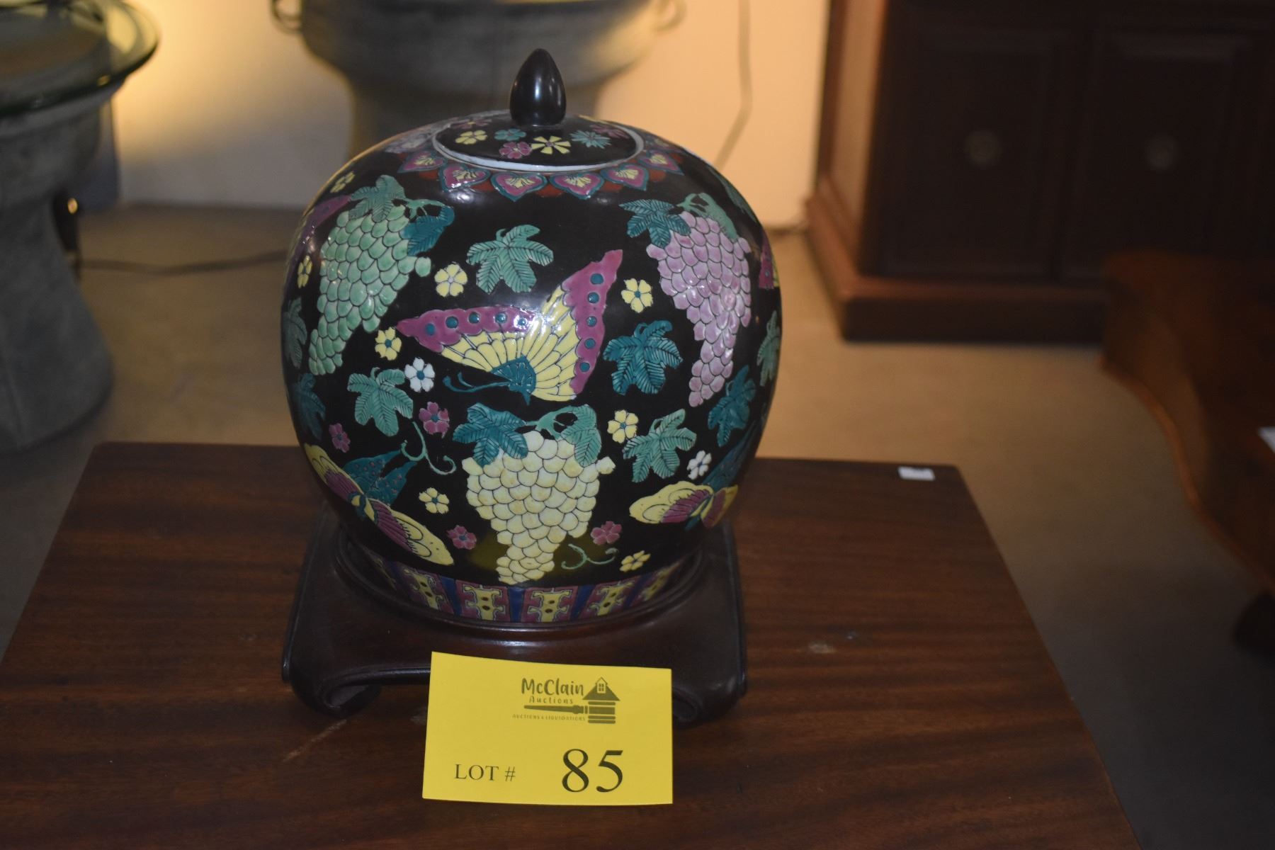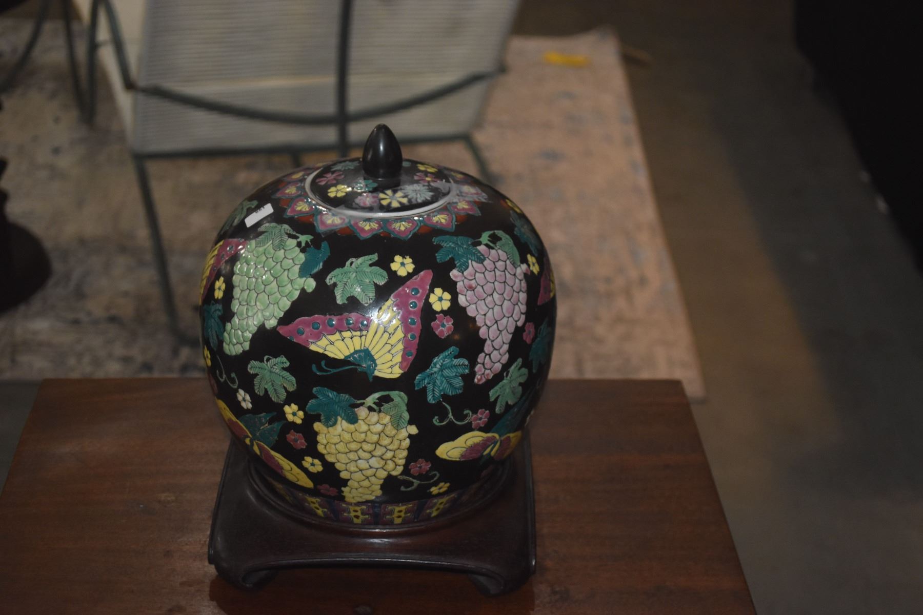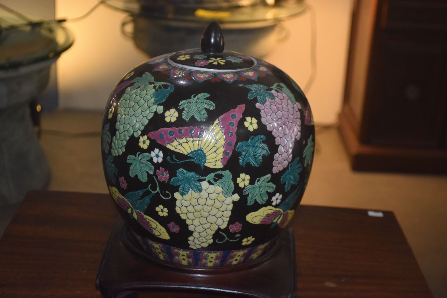 VINTAGE GINGER JAR W/BUTTERFLY & GRAPE MOTIF