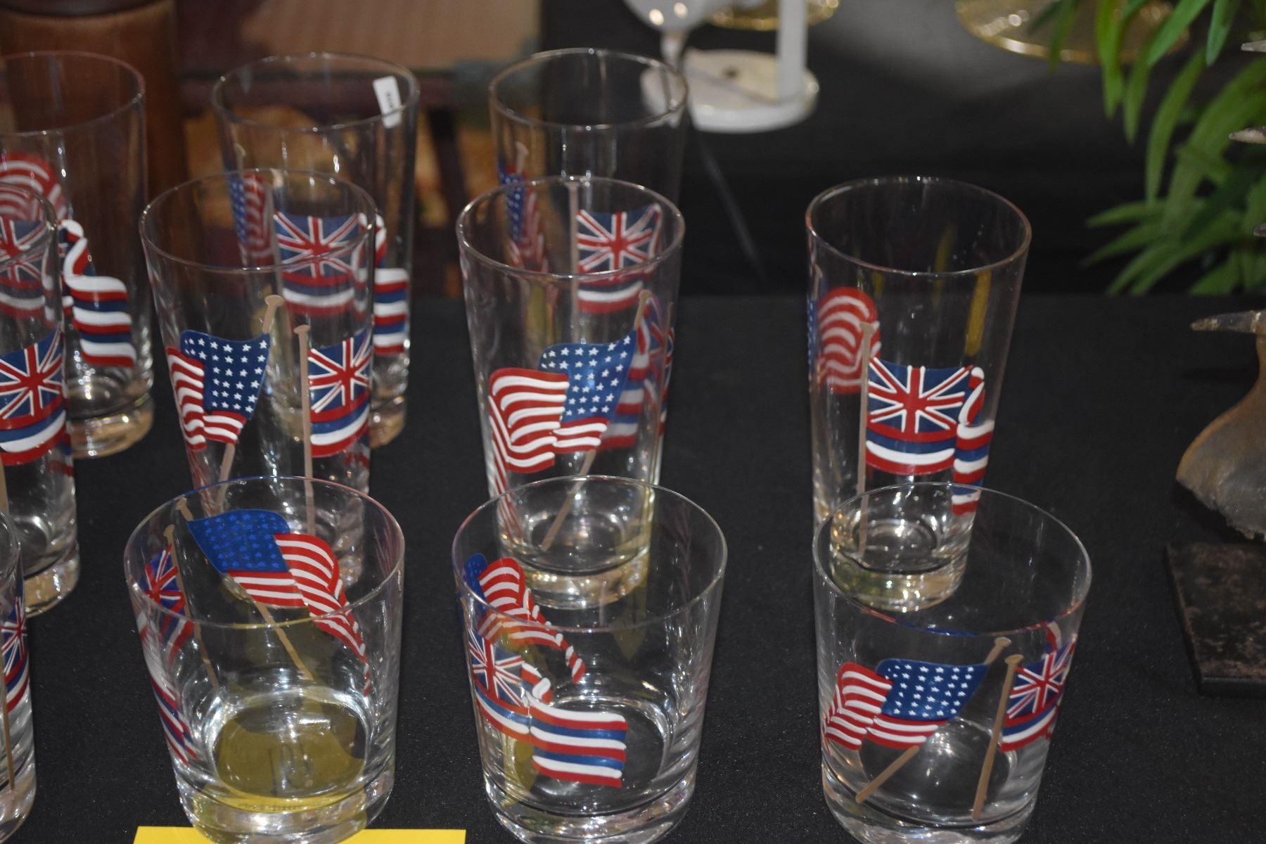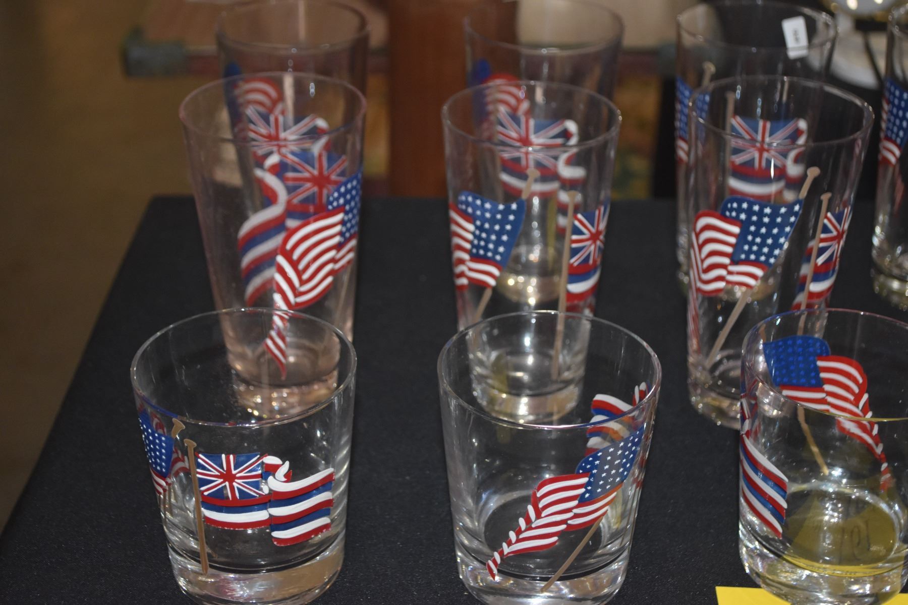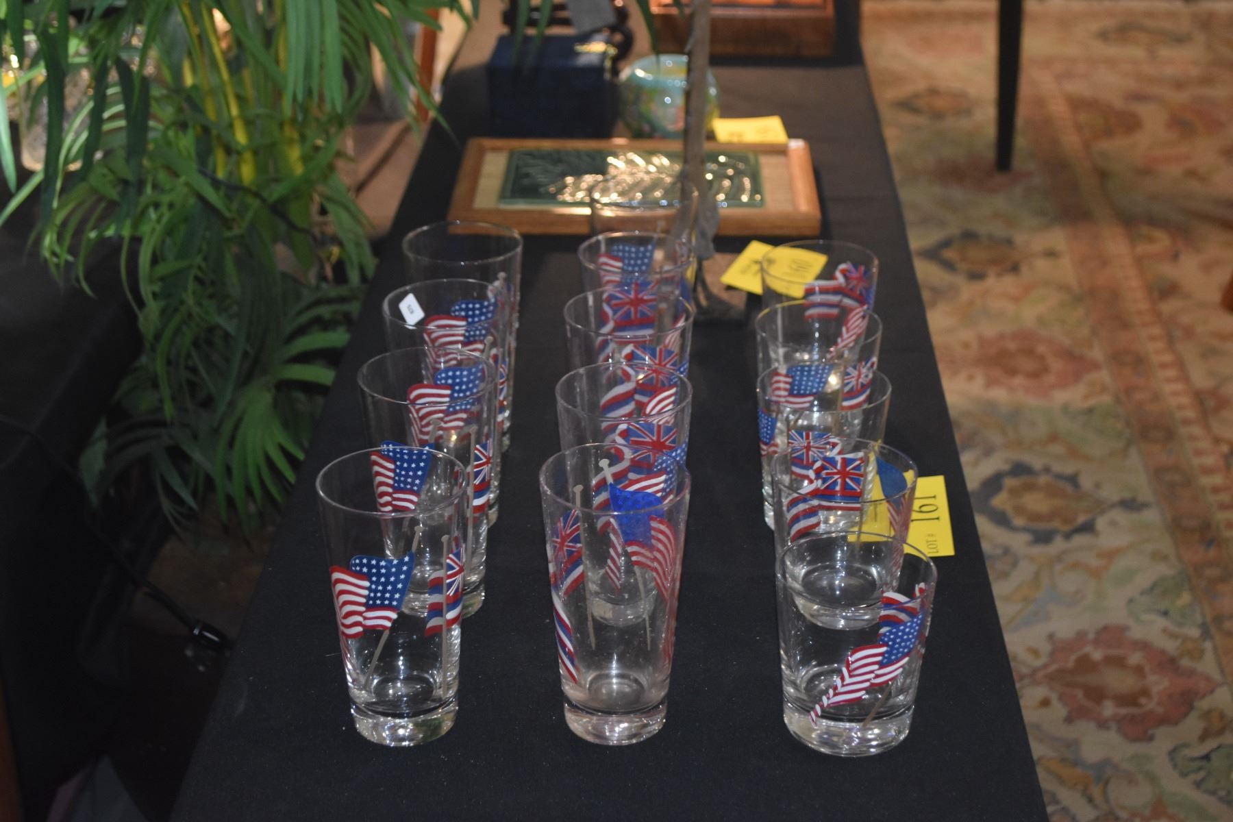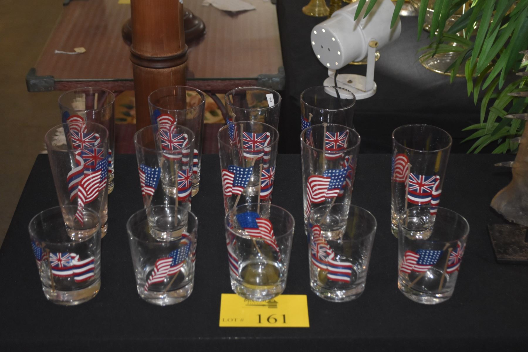 VINTAGE GLASSWARE W/FLAG MOTIF (14 PCS)