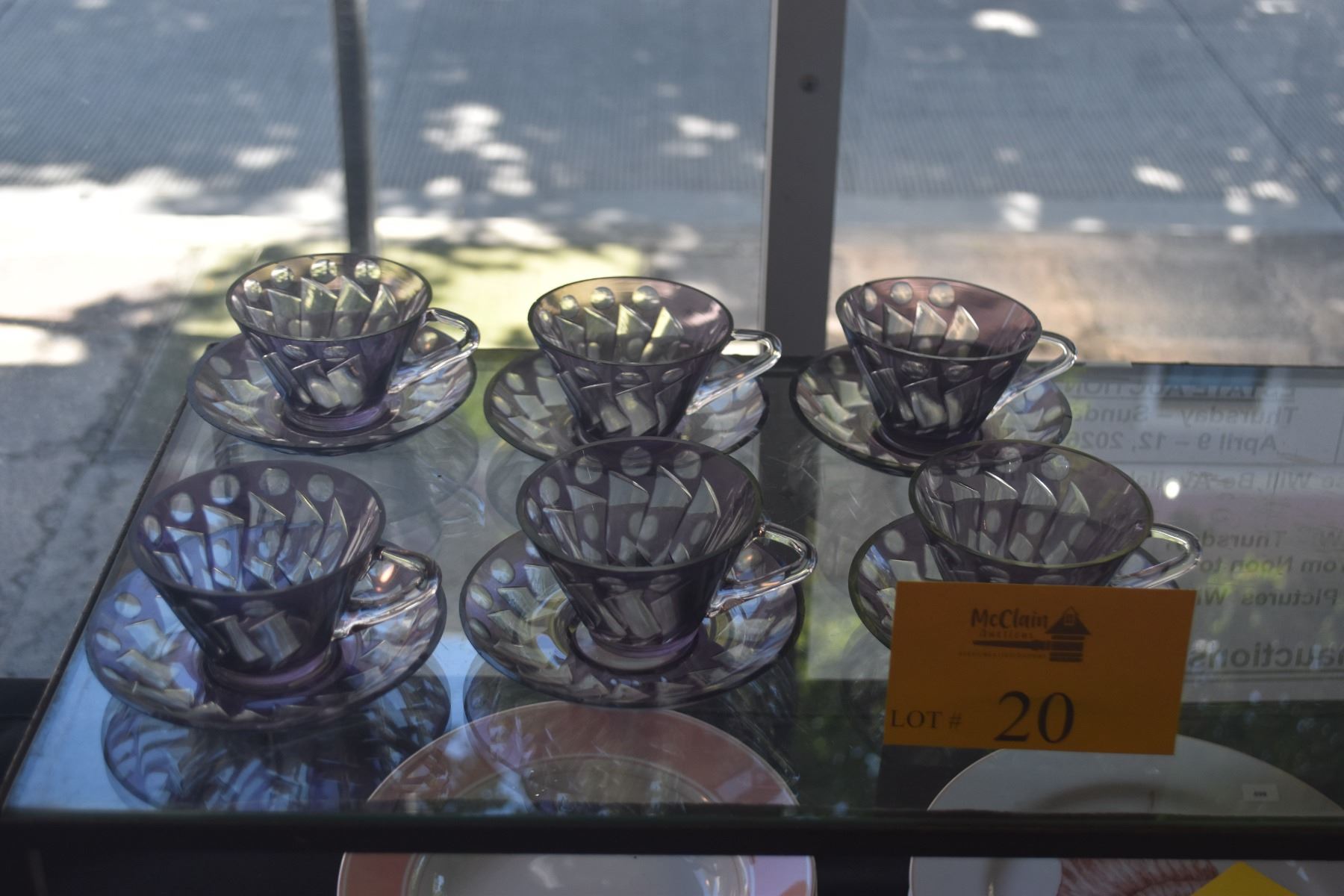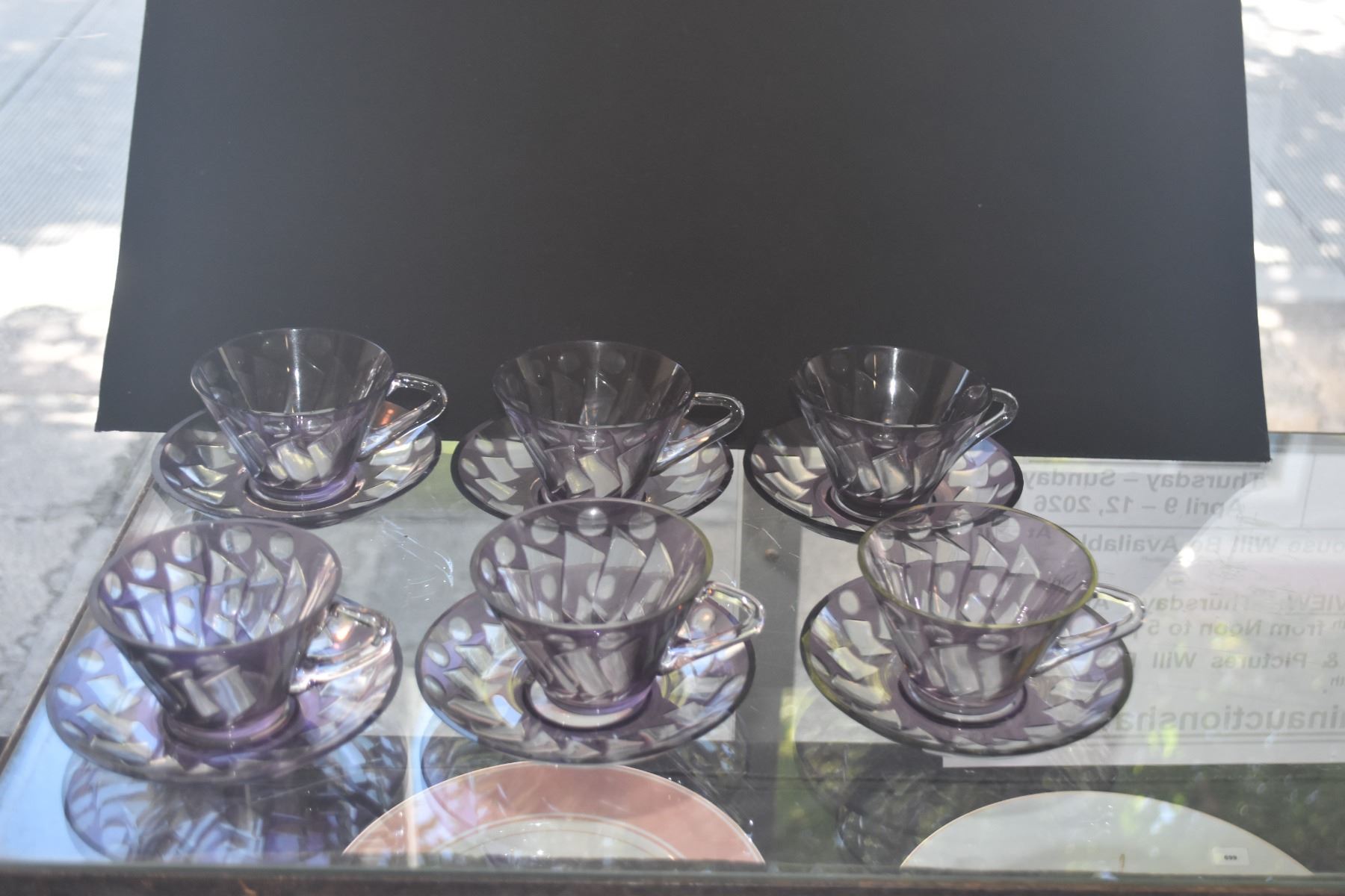 VINTAGE HAZEL ATLAS MOROCCAN AMETHYST GLASS CUPS & SAUCERS (12 PCS)