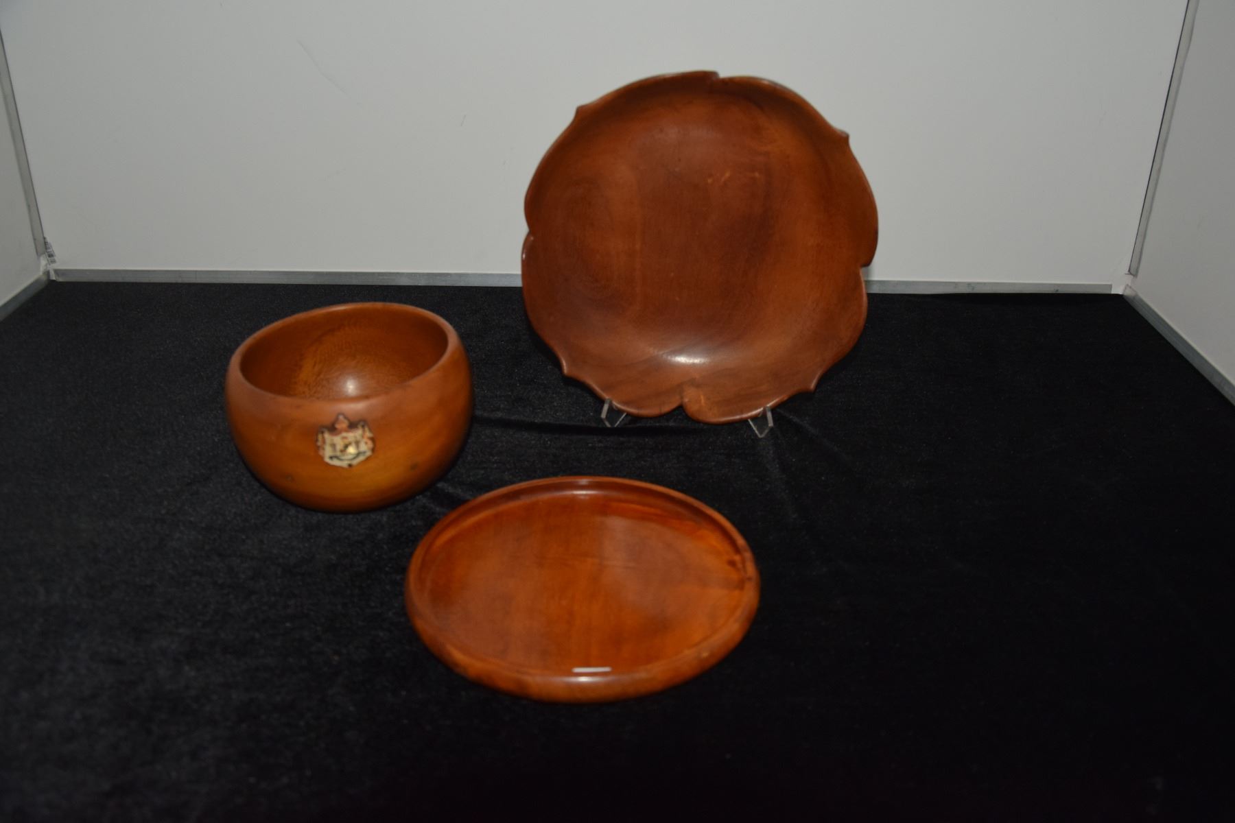 VINTAGE KOA DISH, BLAIR KOA BOWL & WOOD BOWL W/COAT OF ARMS (3 PCS) (DOES NOT INCLUDE STAND)
