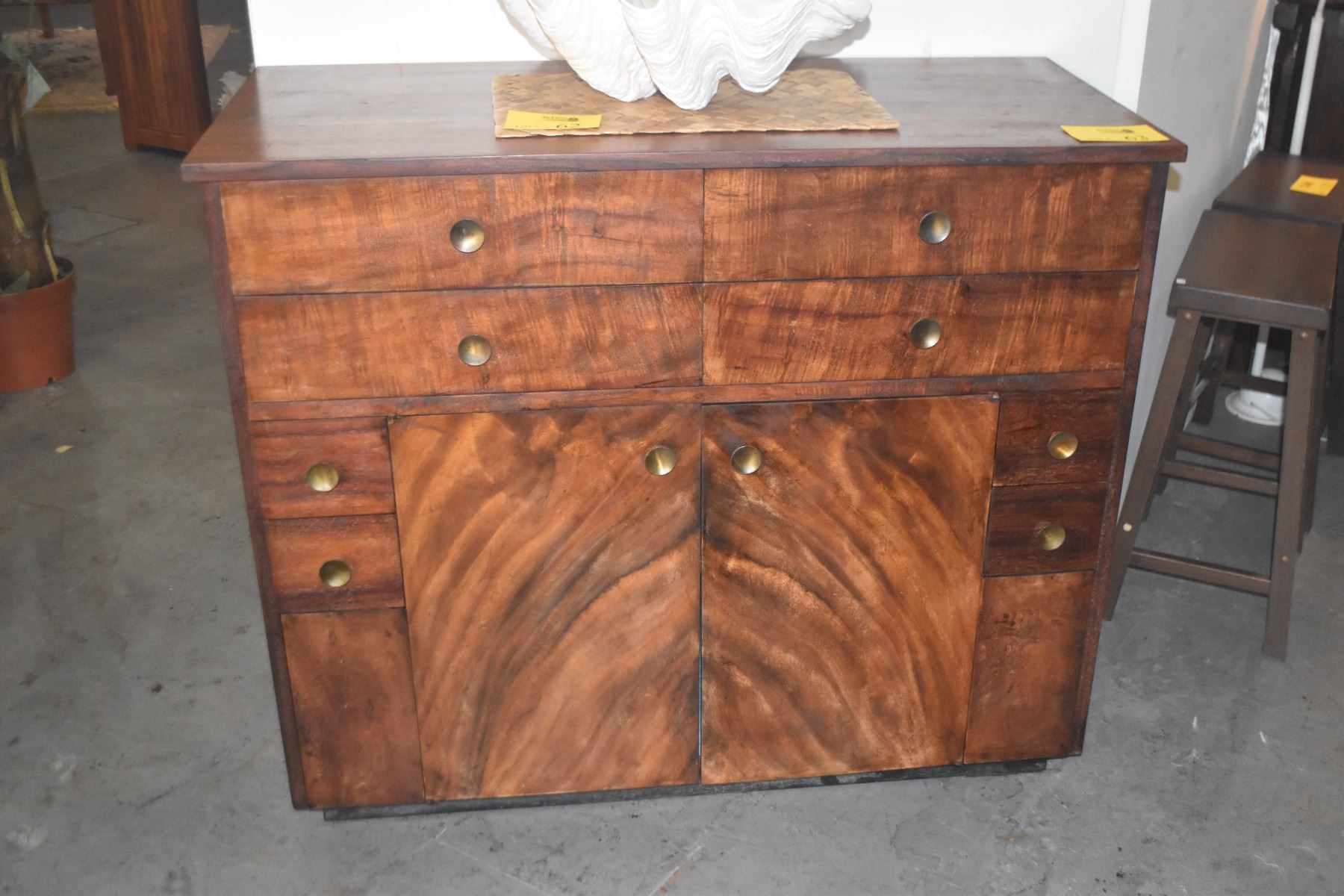 VINTAGE LOCAL MADE MONKEY POD STORAGE CABINET, 10 DRAWERS & 2 DOORS (43 1/2" X 20" X 36 3/4")