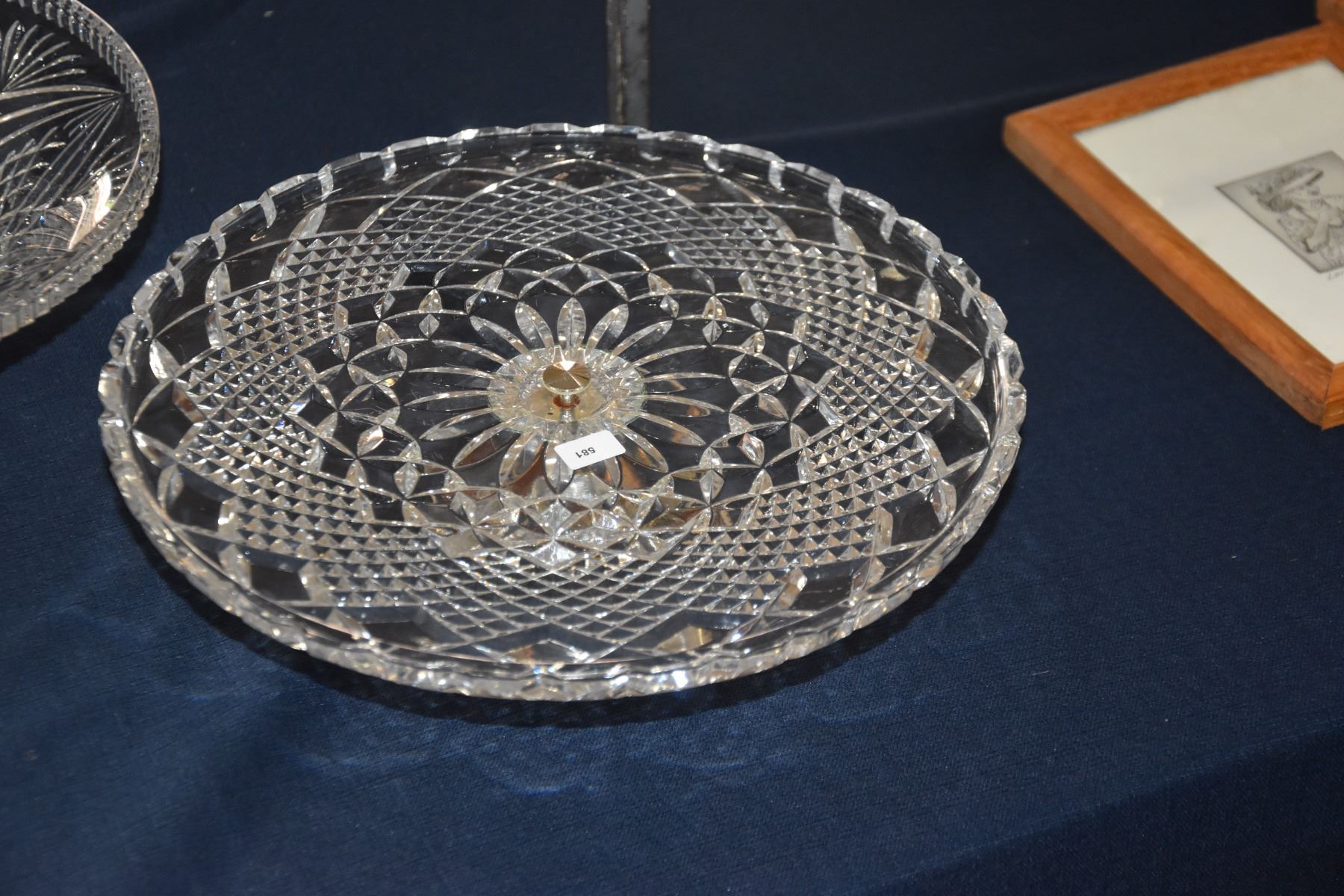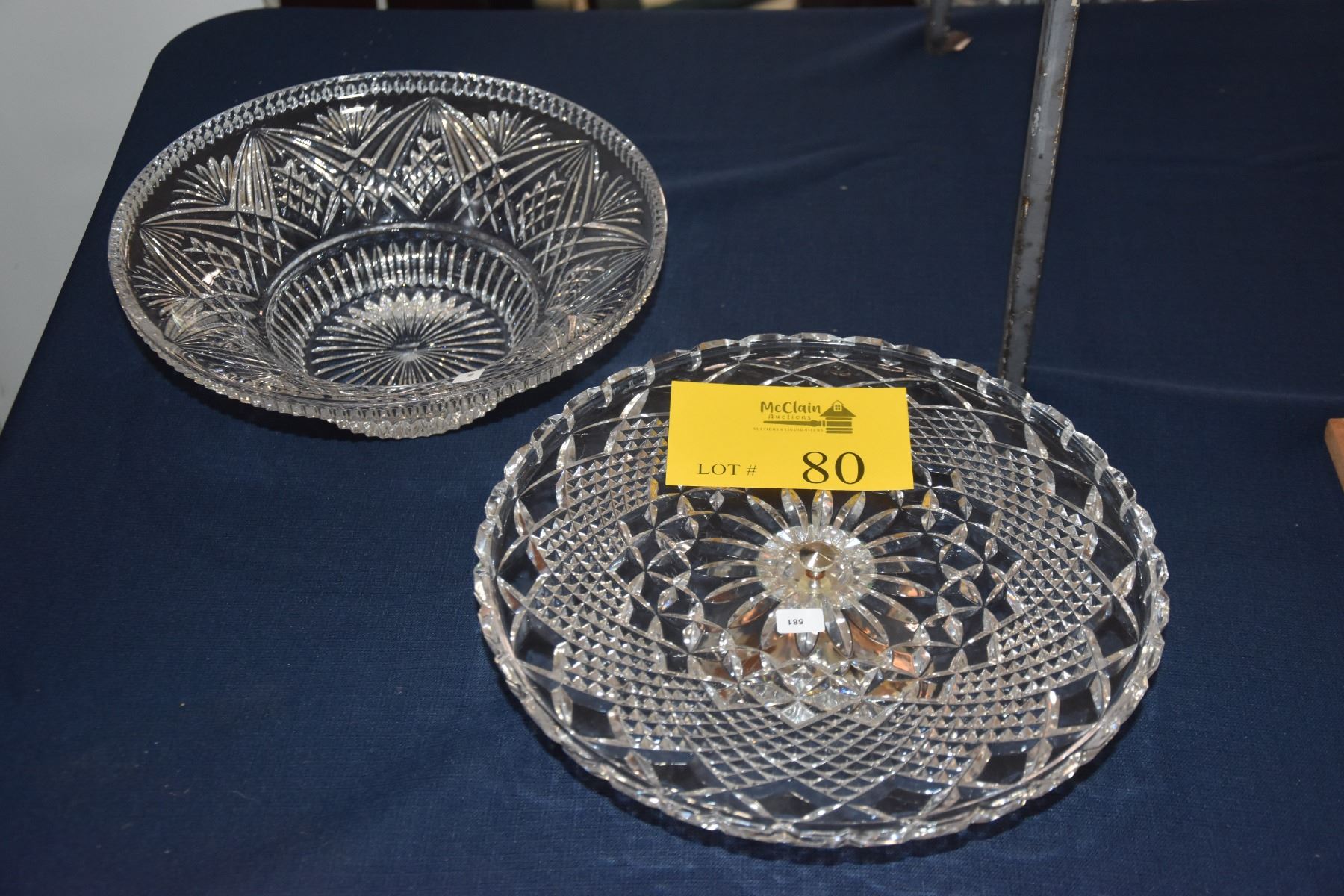 VINTAGE MARQUIS BY WATERFORD 11" WEDGE CUT CRYSTAL BOW BOWL & PEDESTAL CAKE STAND W/SILVERPLATE BASE (2 PCS) (DOES NOT INCLUDE TRAY)