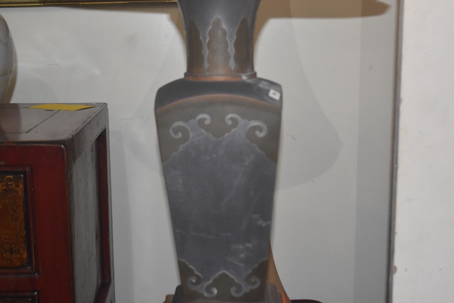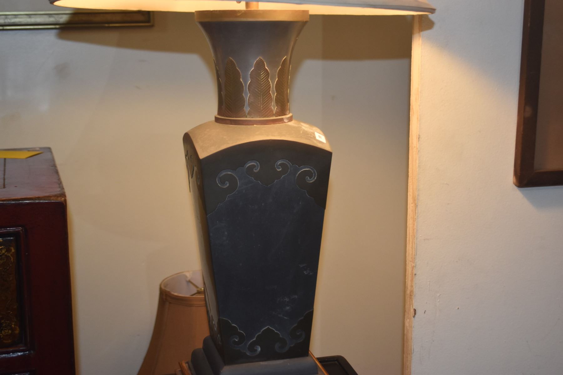 VINTAGE MID CENTURY PEWTER & BRASS URN LAMP (32") (DOES NOT INCLUDE SHADE)