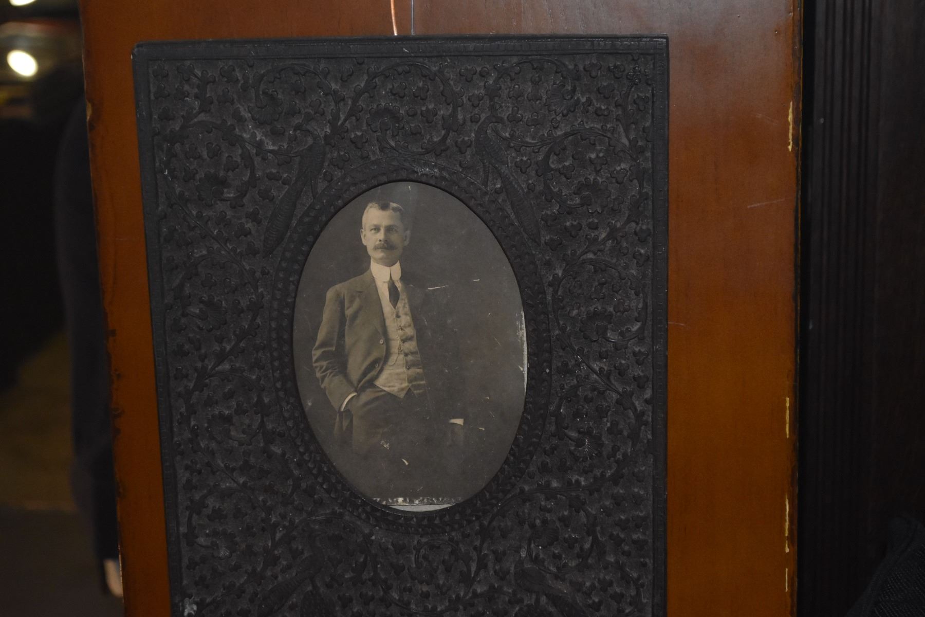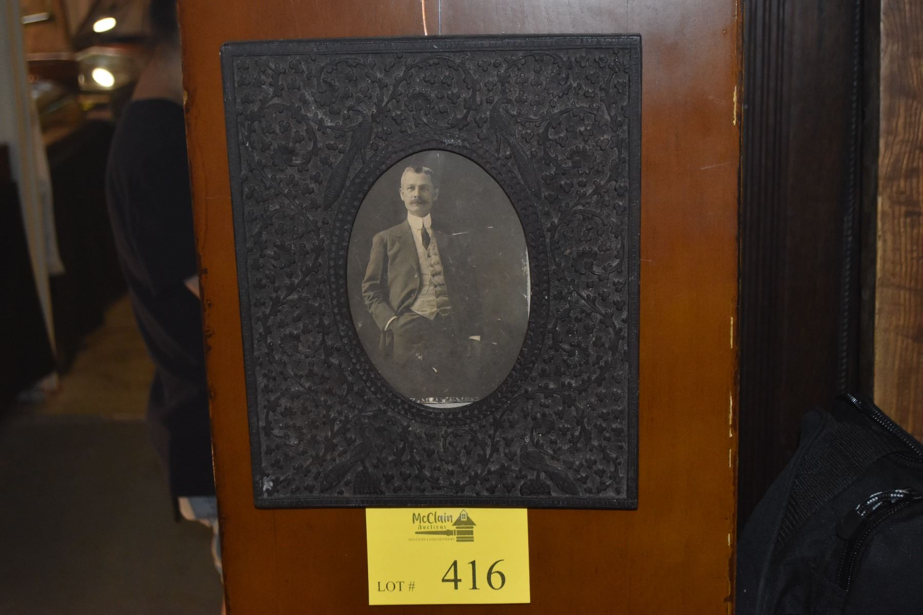 VINTAGE PHOTO IN CARVED WOOD FRAME (10" X 12")
