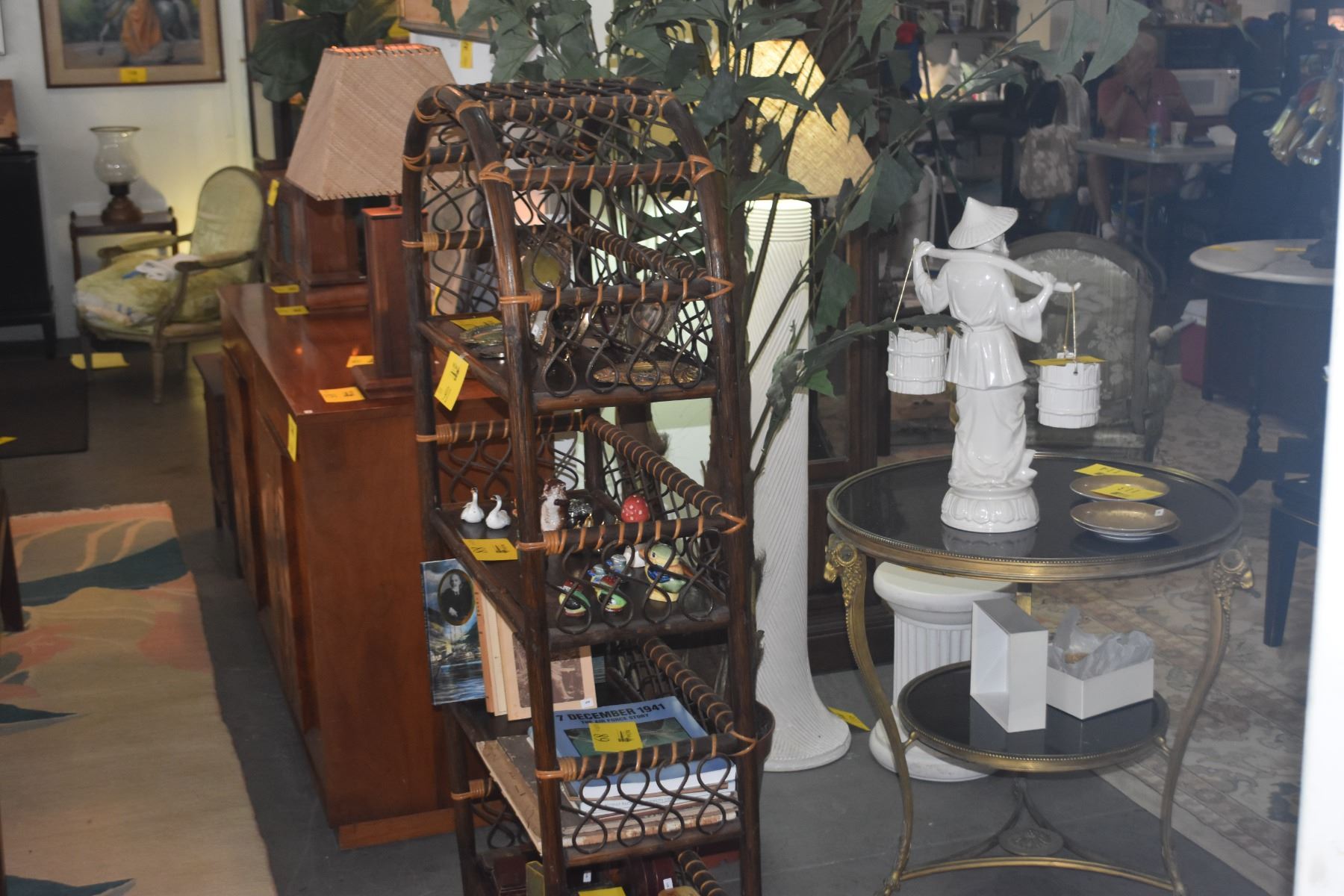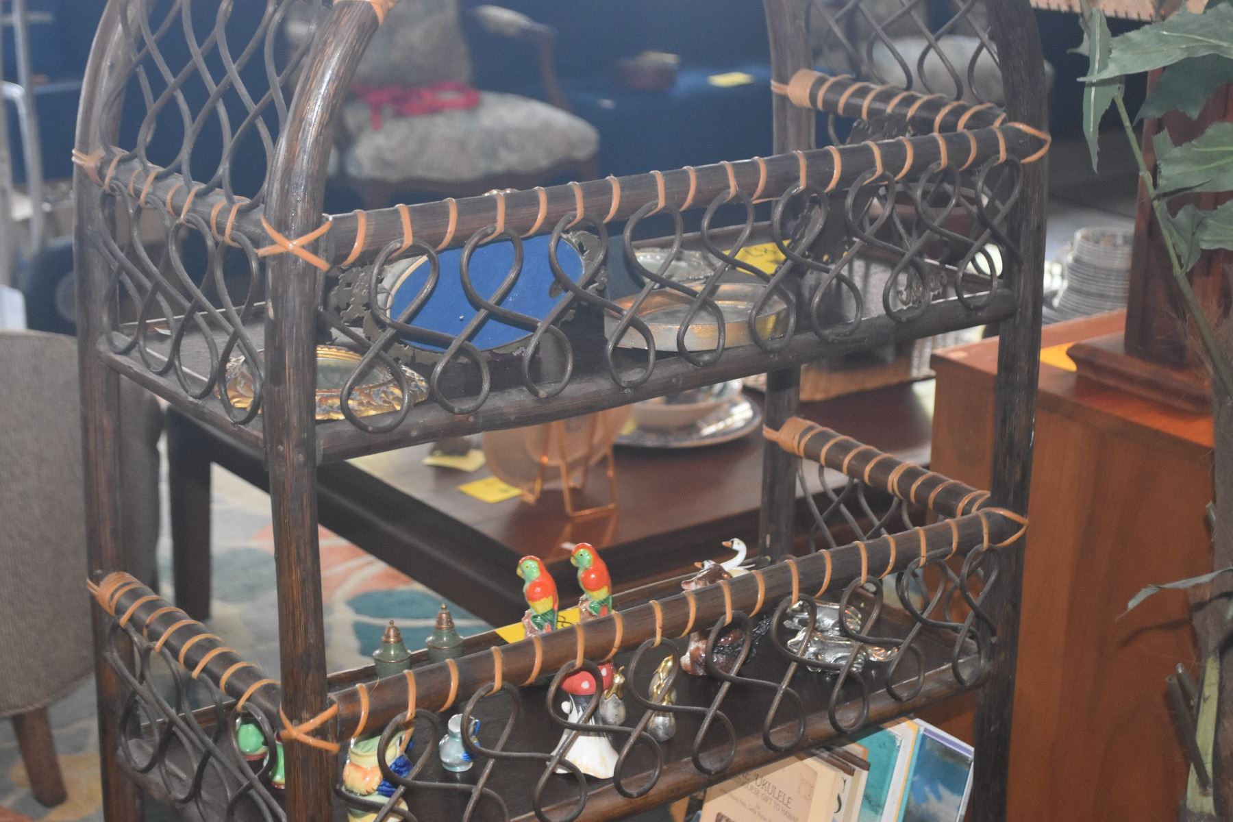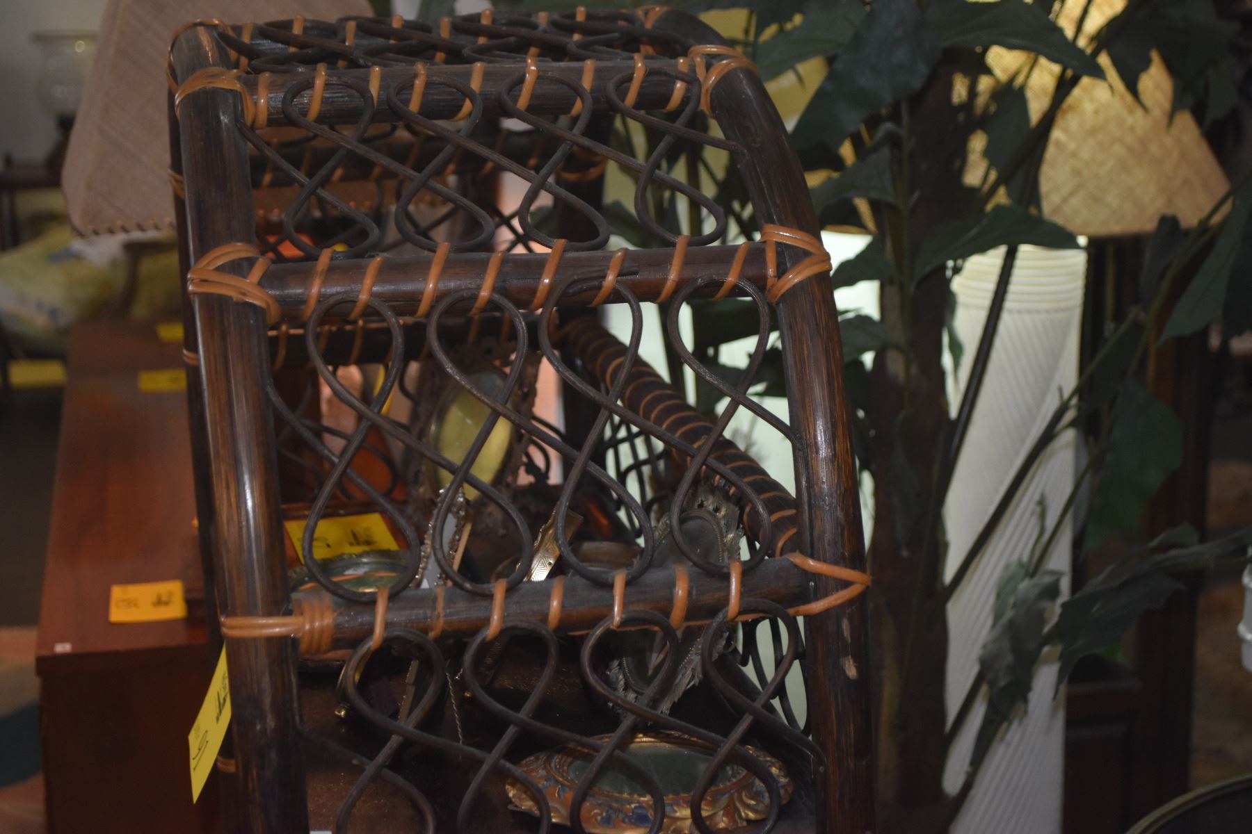 VINTAGE RATTAN & WICKER ARCHED ETAGERE BOOKSHELF (86" X 11 1/2" X 56")