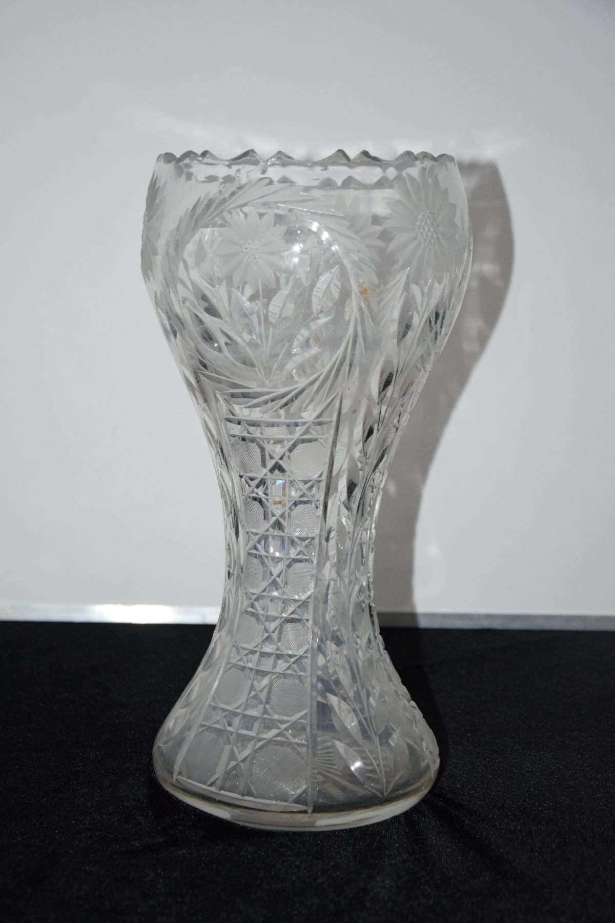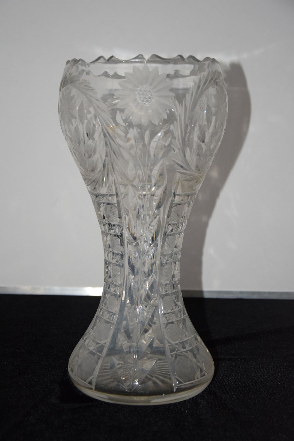 VINTAGE TALL CORSET CRYSTAL VASE (14" H)