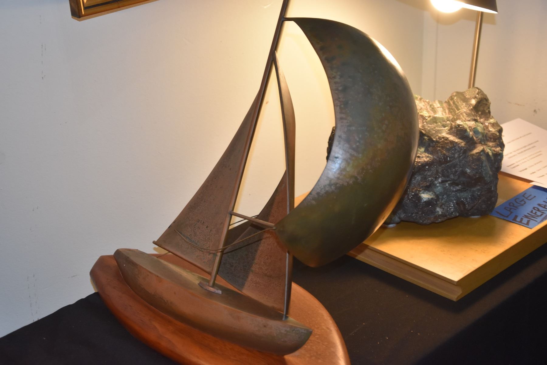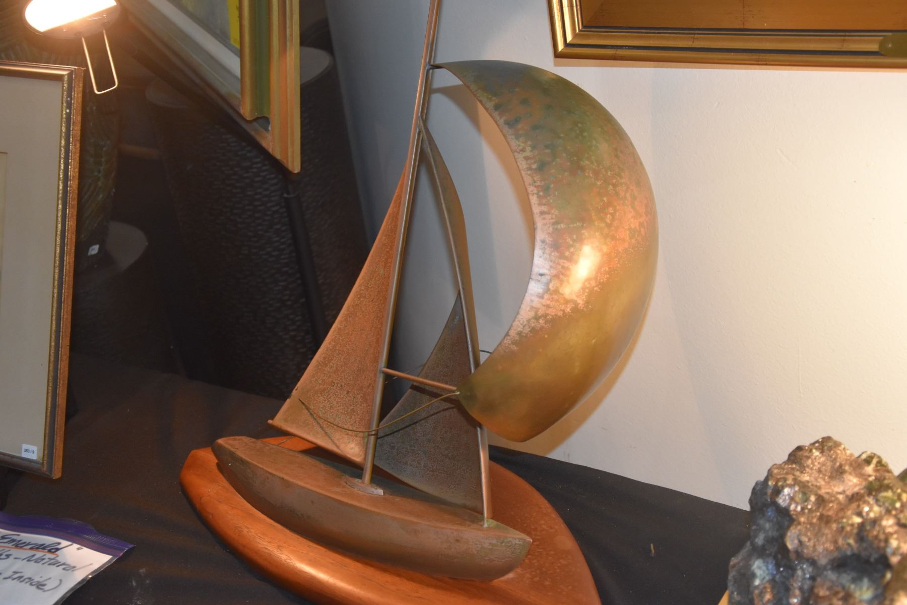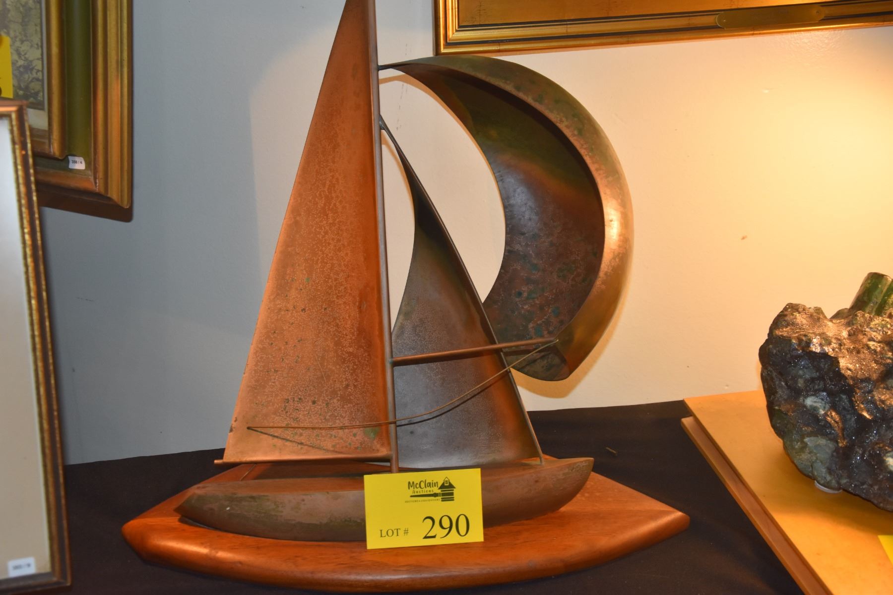 VINTAGE WOOD & METAL SAIL BOAT SCULPTURE