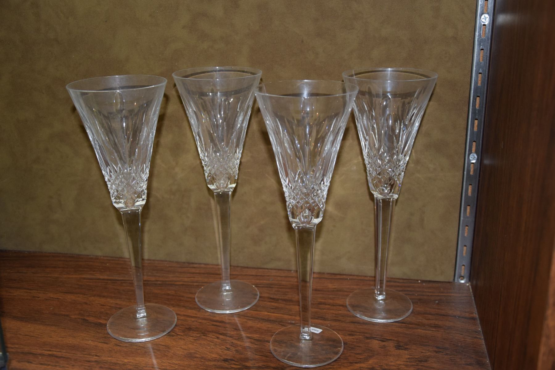 WATERFORD CRYSTAL CHAMPAGNE FLUTES, BLOSSOM PATTERN (4 PCS)