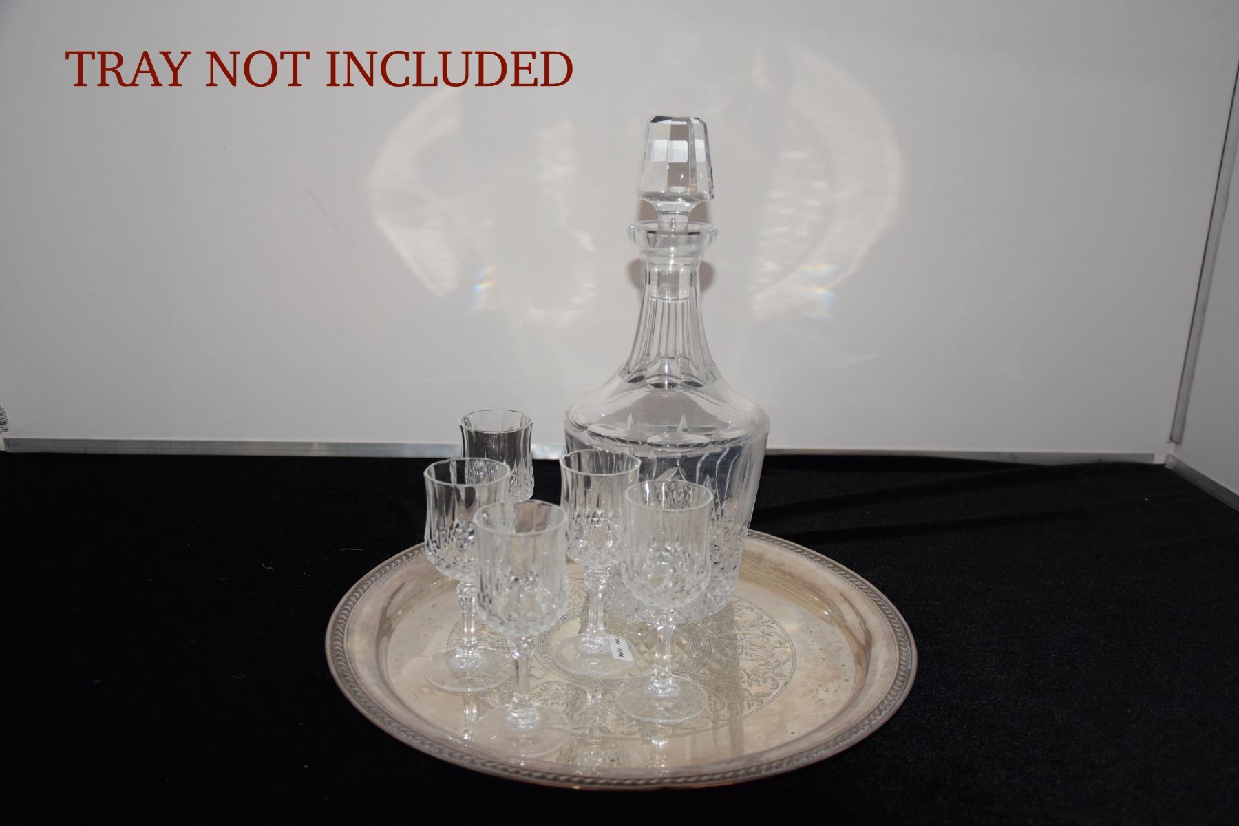 WATERFORD CRYSTAL DECANTER & CRISTAL D'ARGUE DURAND LONCHAMP APERITIF GLASSES (6 PCS) (DOES NOT INCLUDE TRAY)