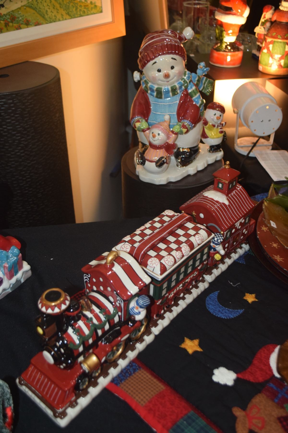 WATERFORD HOLIDAY HEIRLOOMS SNOWMAN COOKIE JAR & TRAIN CANDY DISH CARS W/BOXES