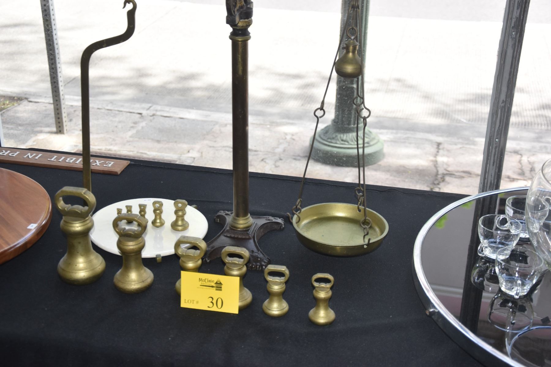 WHITE & SON BALANCE SCALE & WEIGHTS (31" X 22")